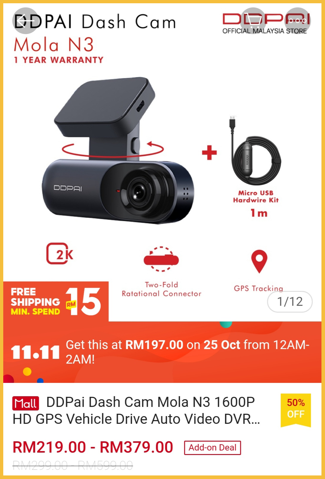▼⑤ DDPai Dash Cam Mola N3 Car Camera Recorder