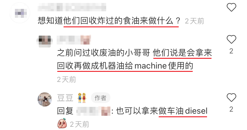 ▼ 据网友们透露,回收的食油会再做成柴油或机油。