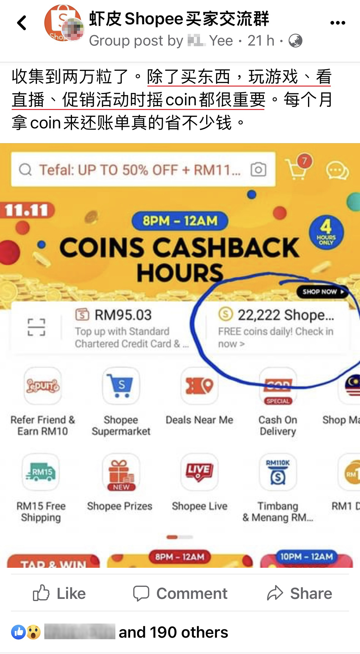 贴主发文分享自己的经验,不需要每天买买买也可以收集到5位数的 Shopee Coin!