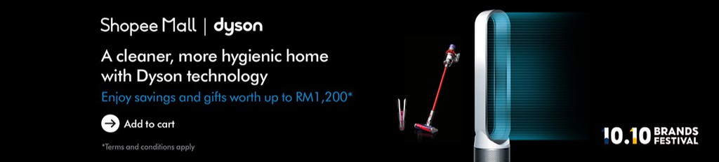为了配合Shopee【10.10 Brands Festival】的到来,Dyson 官方旗舰店将从10月9日至10日推出产品大促销,Dyson Supersonic 吹风机、吸尘机、空气净化风扇等折扣高达RM1200!