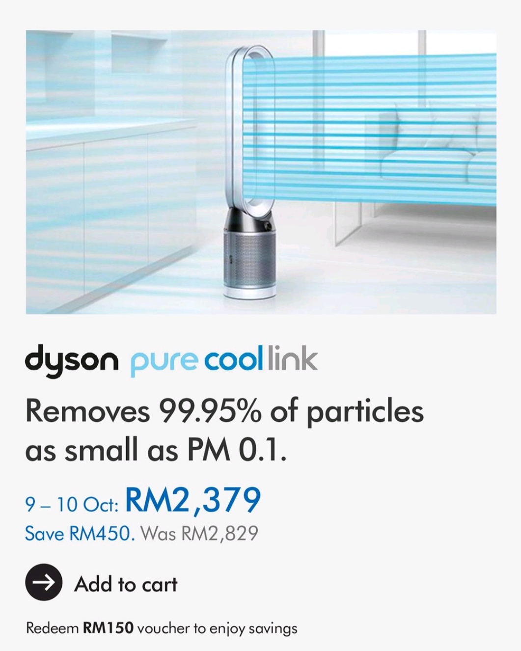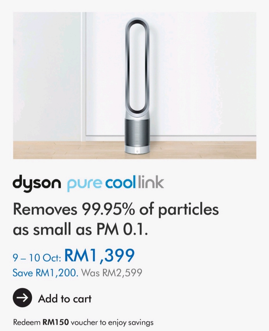 ▼ Dyson Pure Cool Link Air Purifier Tower Fan TP03 – RM1399(原价RM2599;节省RM1200)