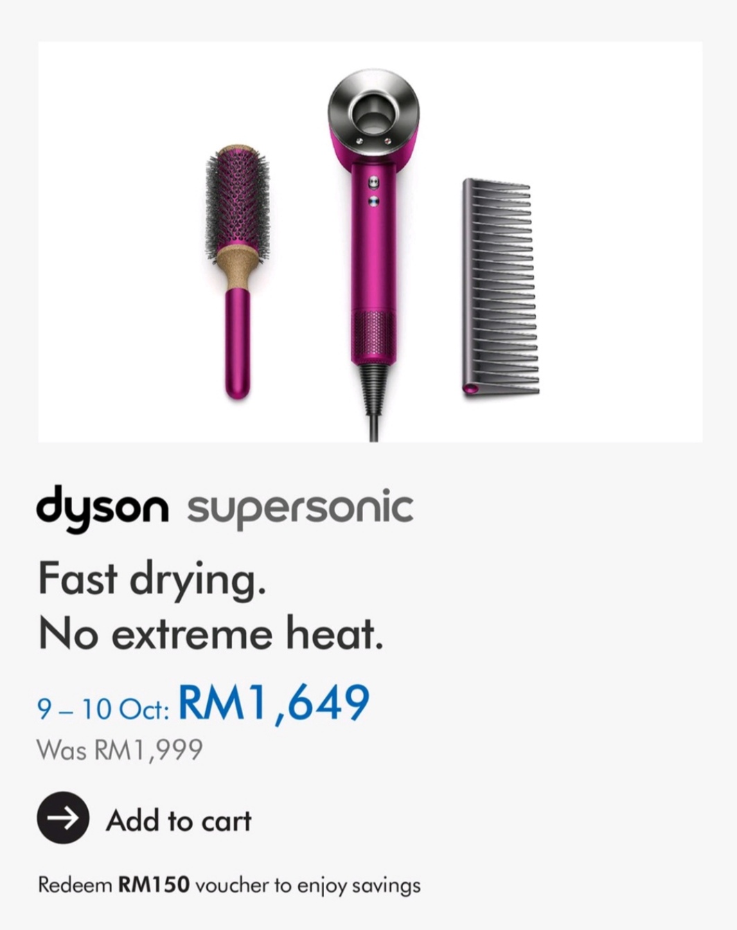 Dyson【10.10】大促销!产品折扣高达RM1200!额外领取RM150折扣券!