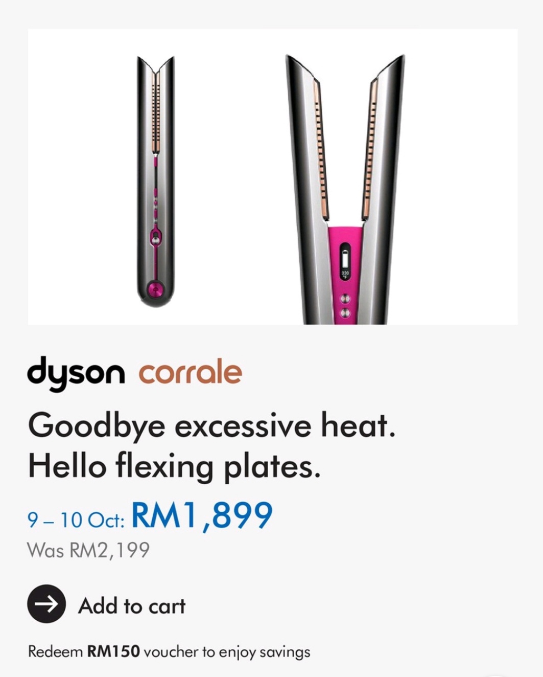 ▼ Dyson Corrale™ Hair Straightener (Black Nickel/Fuchsia) – RM1899(原价RM2199;节省RM300)