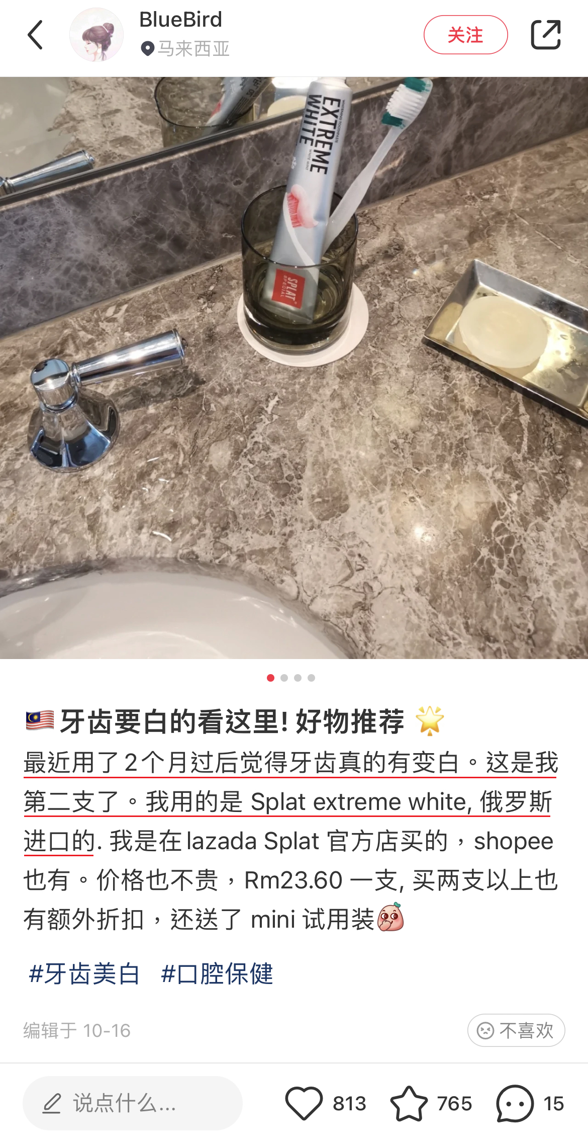 一名大马博主近日在小红书推荐一款来自俄罗斯品牌的牙膏,价格不贵但超级好用而且很有效,使用以后牙齿真的明显变白了,最重要是它采用的都是天然成份!