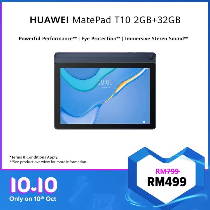 ▼ HUAWEI MatePad T10 Tablet (2GB RAM + 32GB ROM) – RM499(原价RM799;省下RM300)