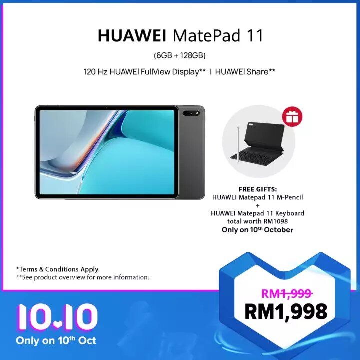 附送赠品:Huawei Matepad 11 M-Pencil + Matepad 11 Keyboard(价值RM1098)