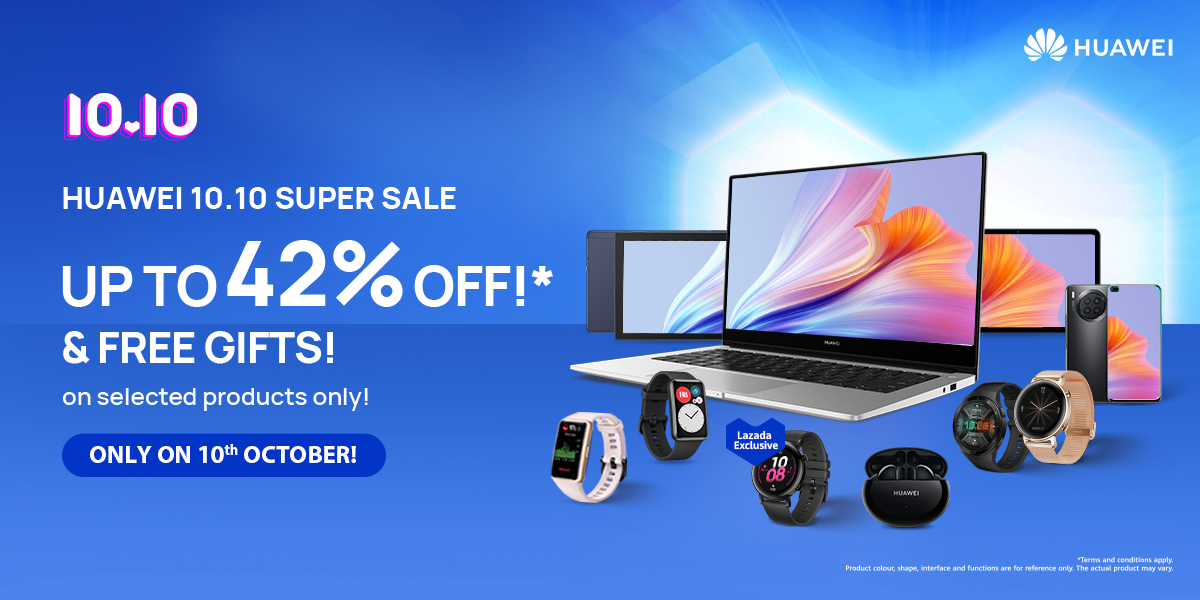 Lazada Huawei 官方旗舰店将在10月10日推出【10.10 Super Sale】大优惠,折扣高达42%!