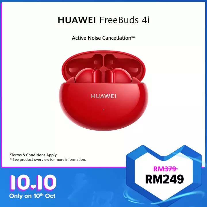 ▼ HUAWEI FreeBuds 4i Wireless Bluetooth Earphone – RM249(原价RM379;省下RM130)