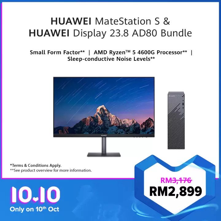 ▼ HUAWEI MateStation S and HUAWEI Display 23.8 AD80 Bundle – 只需RM2899(原价RM3176;省下RM277)