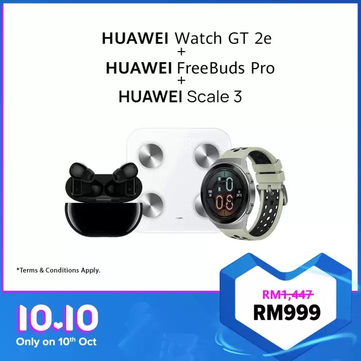 ▼ Huawei Watch GT 2e + Freebuds Pro + Scale 3 – 只需RM999(原价RM1447;省下RM448)