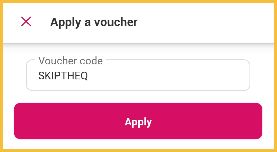步骤4:输入【SKIPTHEQ】优惠代码。