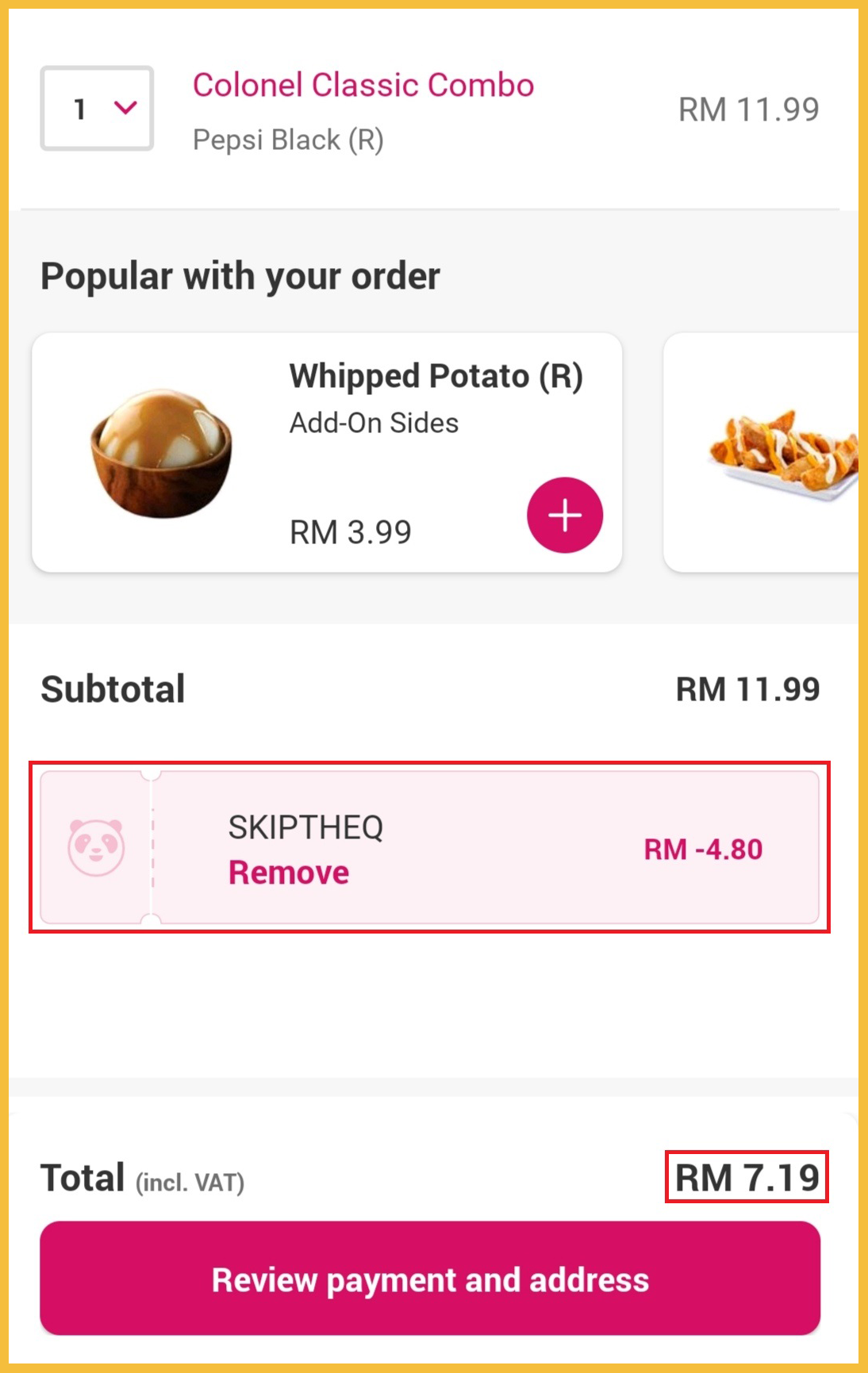 除此之外,你还可以通过这个优惠代码订购其他KFC 套餐!