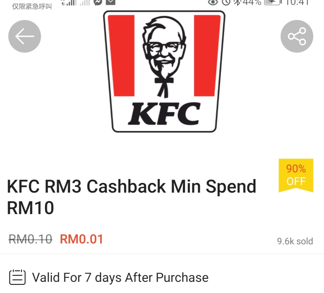 ① 第一种:在Shopee App 购买KFC 礼券,可获RM3 现金回扣(消费RM10)
