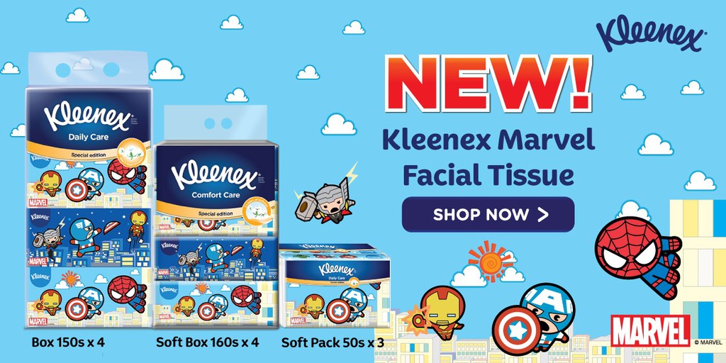 还全新推出Kleenex x Marvel 包装的纸巾哦!喜欢Marvel 的朋友,千万别错过!