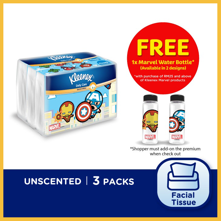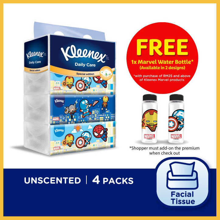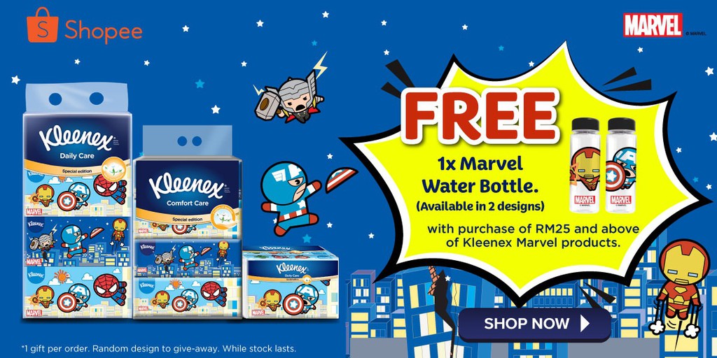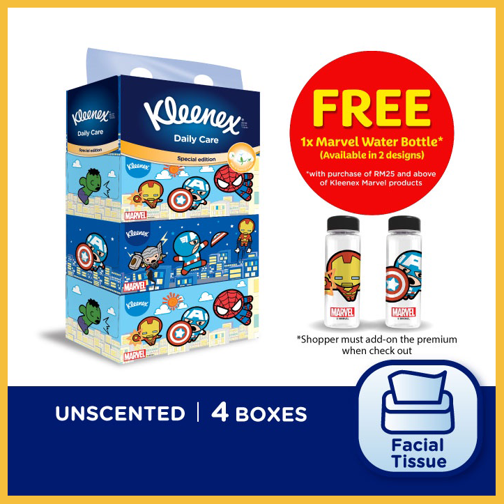 促销活动:购买RM25 或以上Kleenex Marvel 纸巾免费送出一个Marvel 水瓶