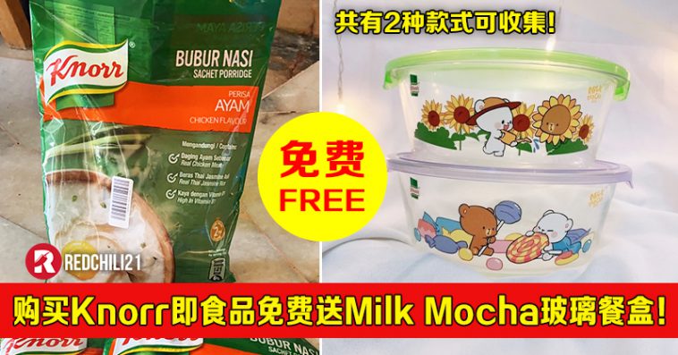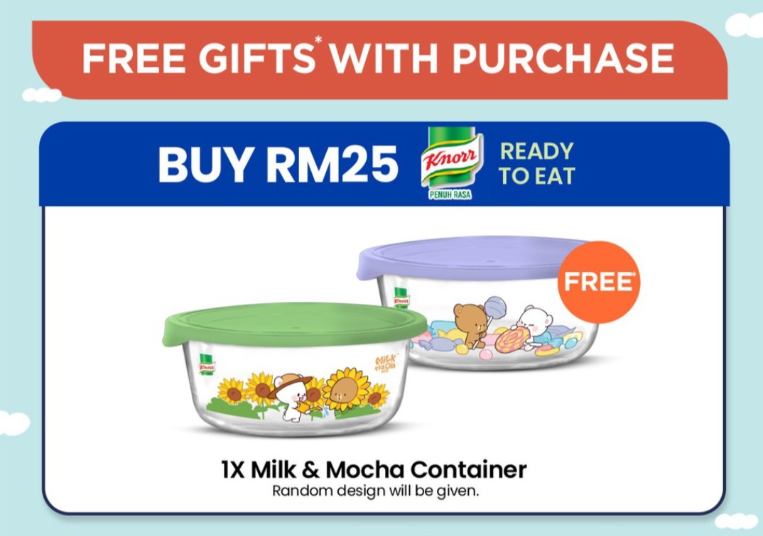 只要你购买RM25 或以上Knorr 即食品,就可免费获得一个超可爱的Milk Mocha 玻璃餐盒!