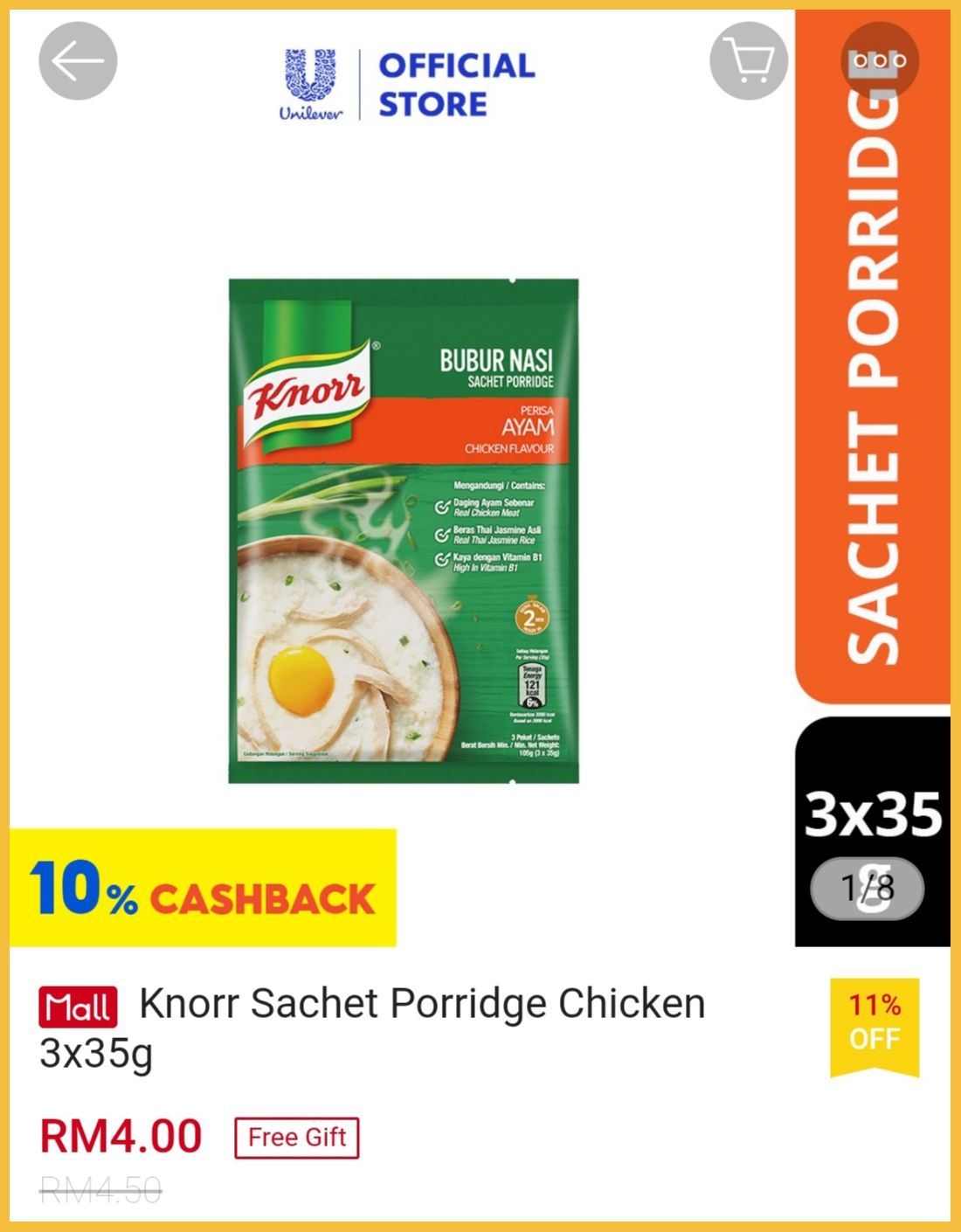 ▼ Knorr Sachet Porridge Chicken 3x35g – RM4;购买【点击这里】