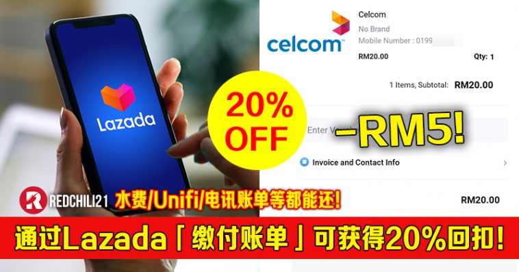 促销活动:Lazada —— 缴付水电费或电讯账单可获得20%回扣