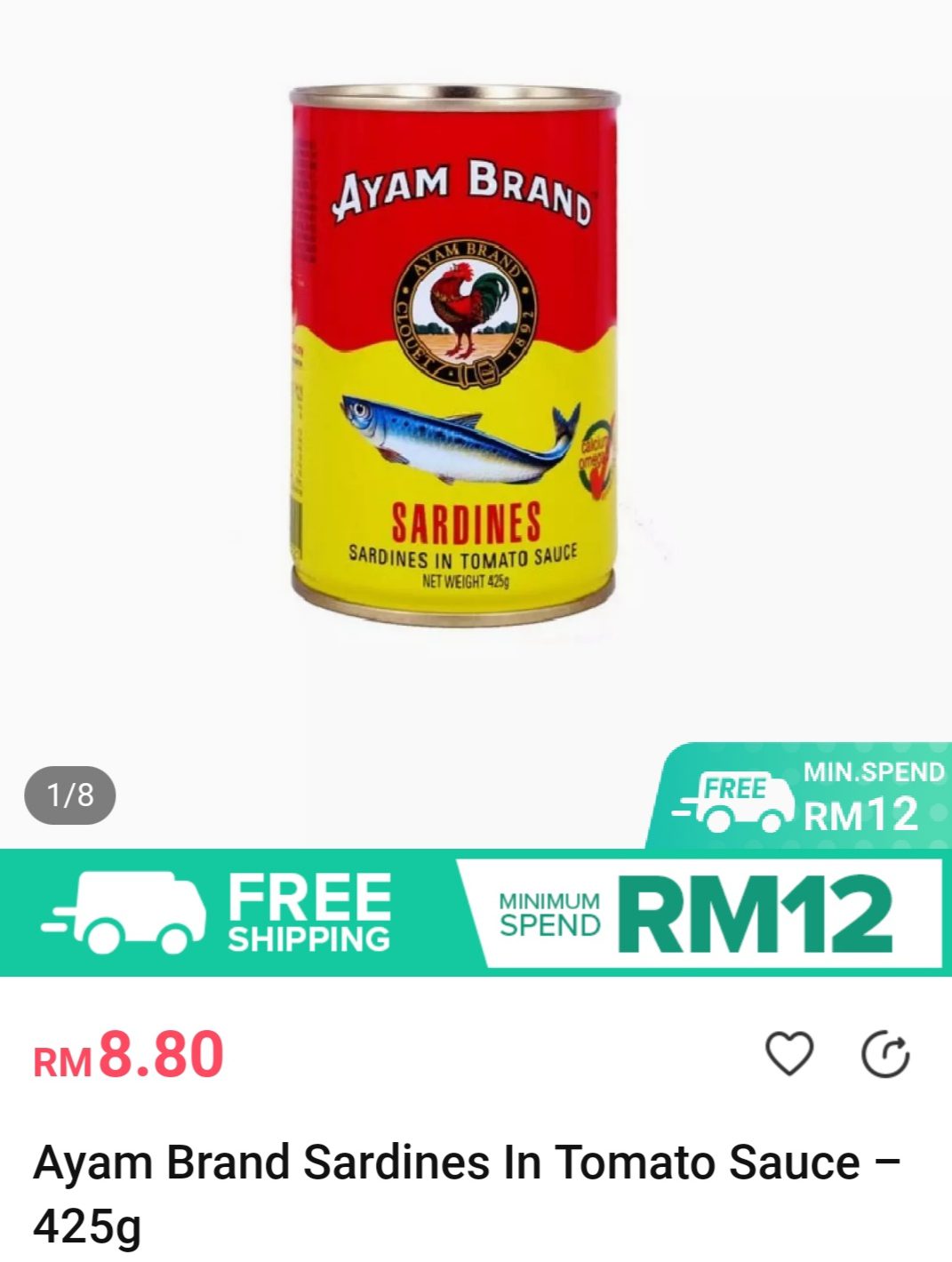 ▼ 2罐沙丁鱼罐头(原价RM17.60)折扣RM5 +免邮券,只需RM12.60!平均一罐只需RM6.30!