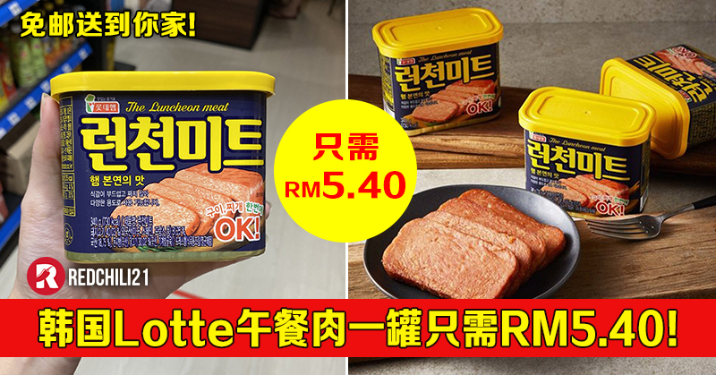 此外,你可以使用这RM5 折扣券,购买韩国Lotte午餐肉,一罐只需RM5.40!还免邮送到你家!