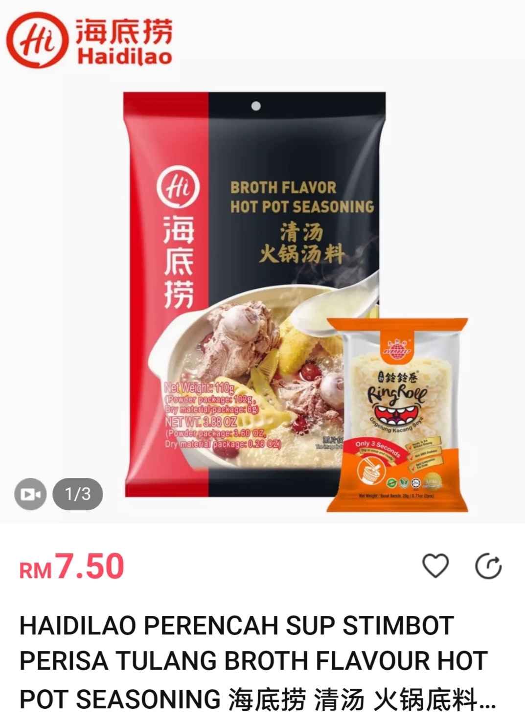 ▼ viii)海底捞清汤火锅底料 110g;购买【点击这里】