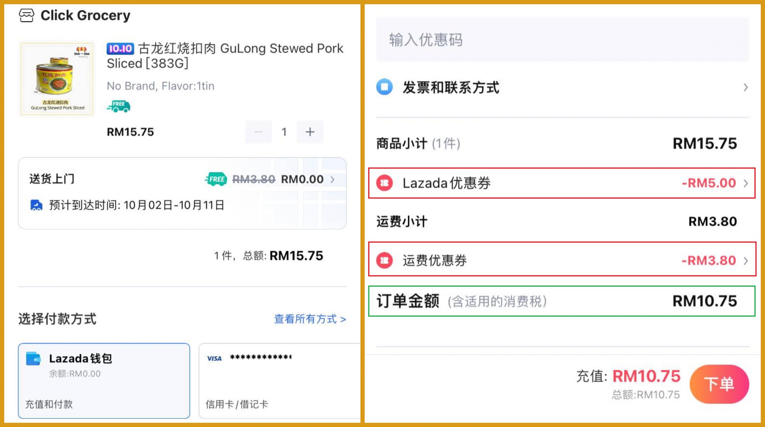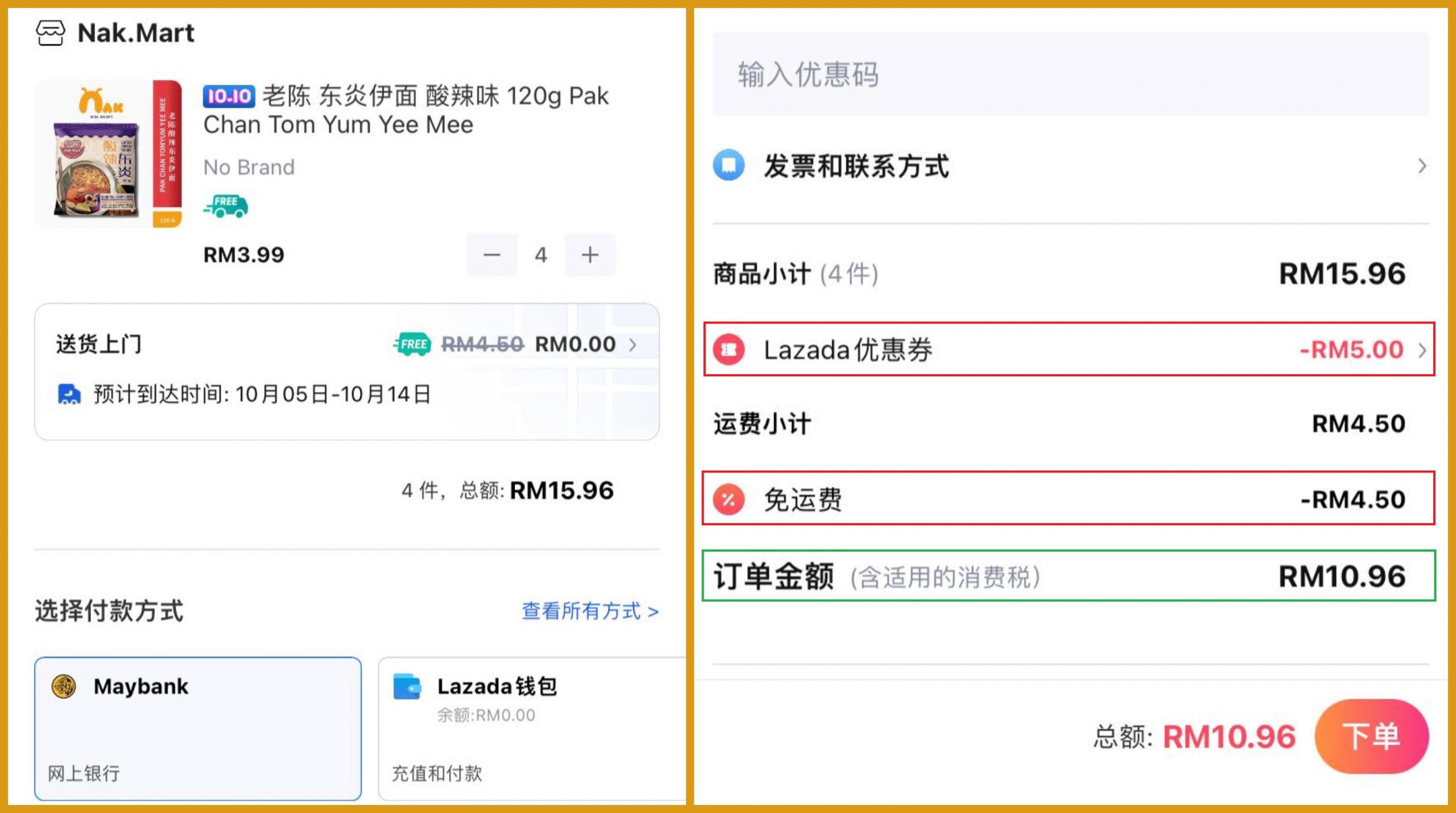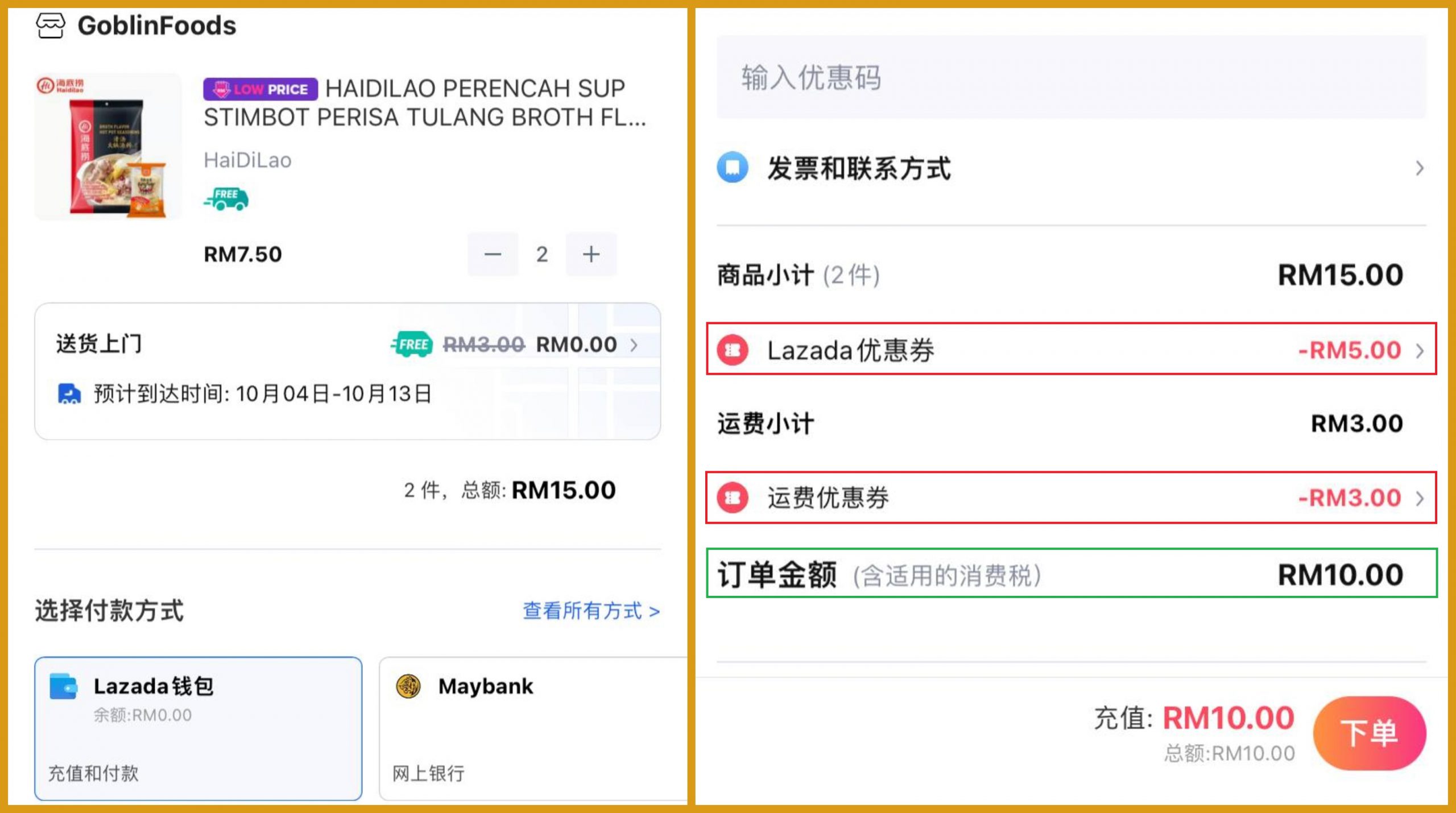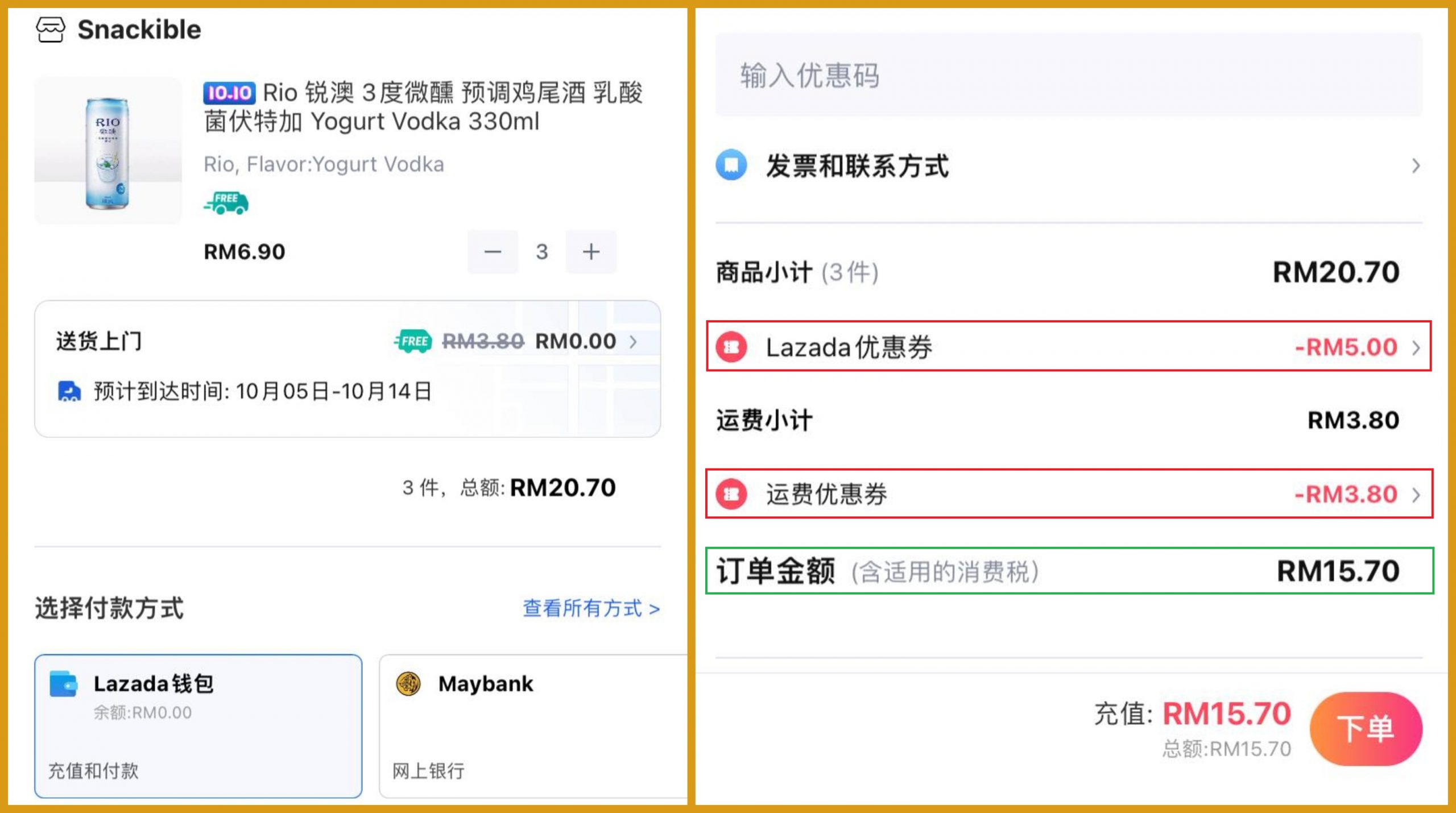 ① 首先领取RM5 折扣券及免邮券【点击这里】(折扣券需通过Lazada App 查看及领取)