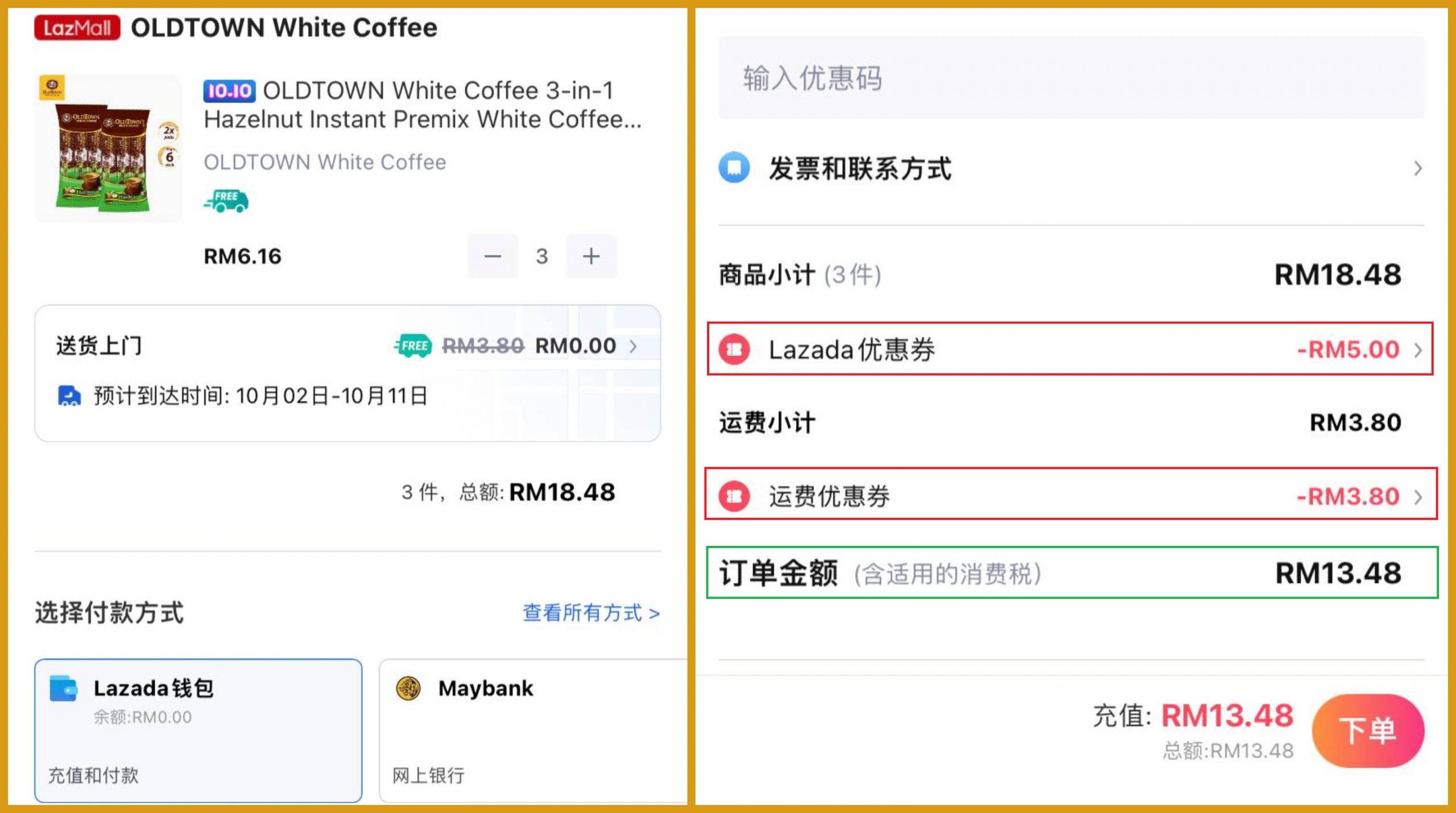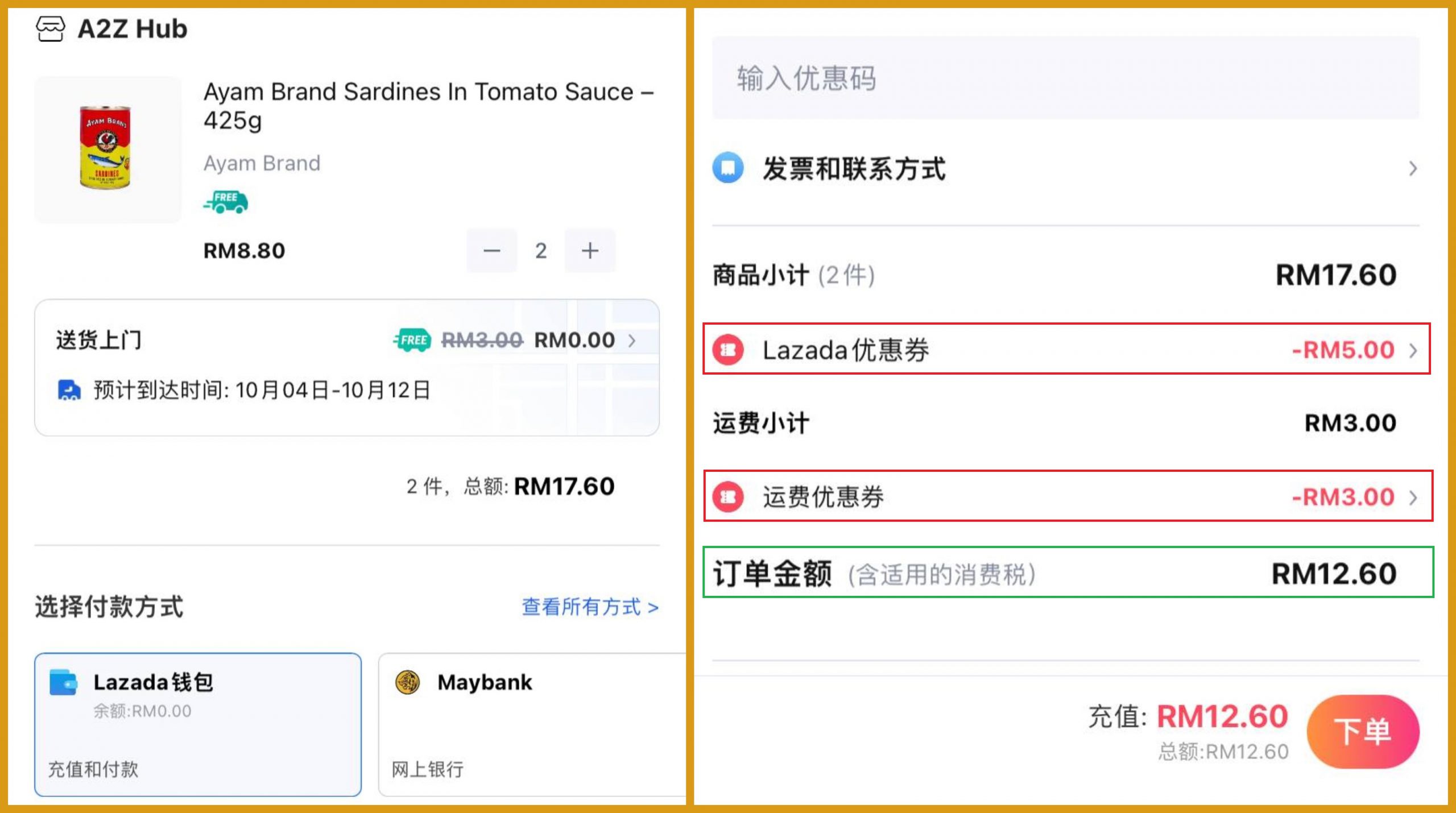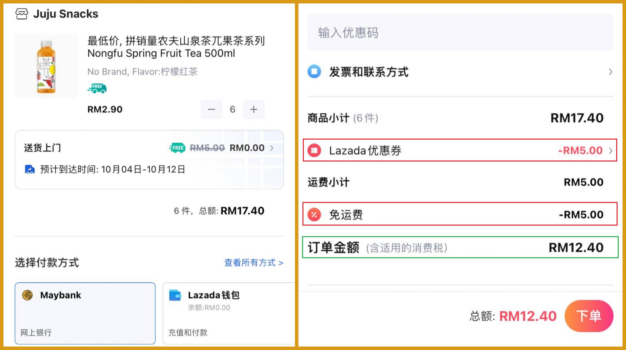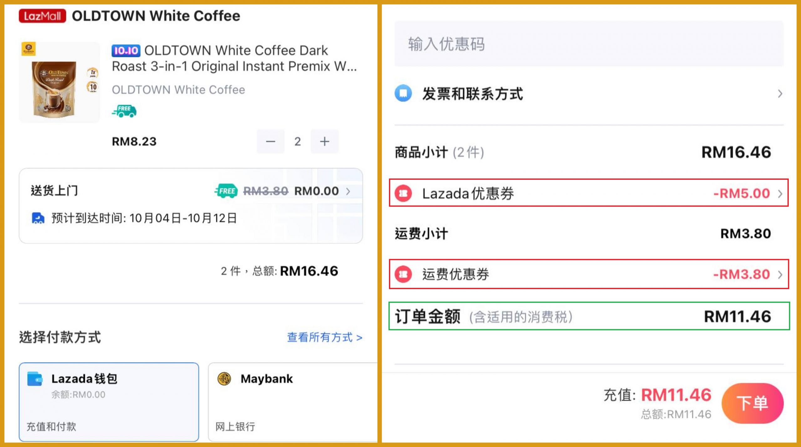 ① 首先领取RM5 折扣券及免邮券【点击这里】(折扣券需通过Lazada App 查看及领取)