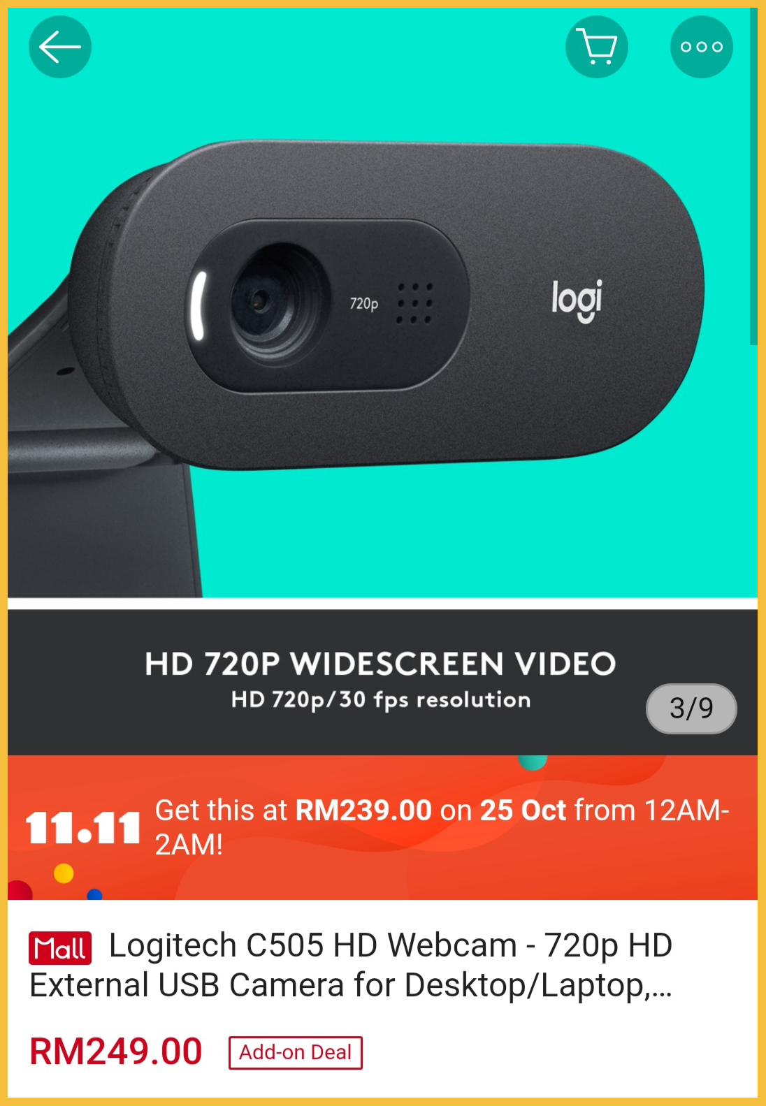 ▼⑦ Logitech C505 HD Webcam【折扣4%】 – RM249 RM239(10月25日限时优惠)