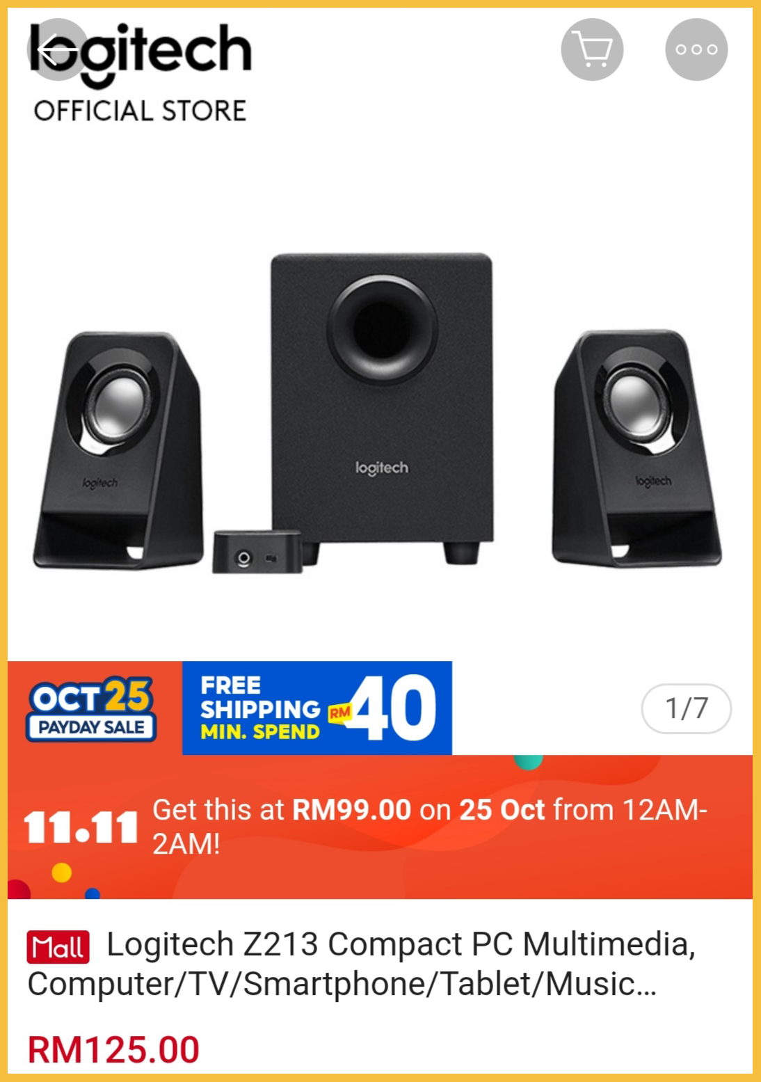 ▼⑪ Logitech Z213 Compact PC Multimedia 2.1 Speaker System with Subwoofer【折扣20%】 – RM125 RM99(10月25日限时优惠)