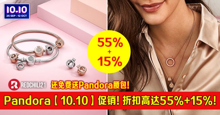 Pandora【10.10】促销!折扣高达55%+15%折扣券!还免费送出Pandora腰包!
