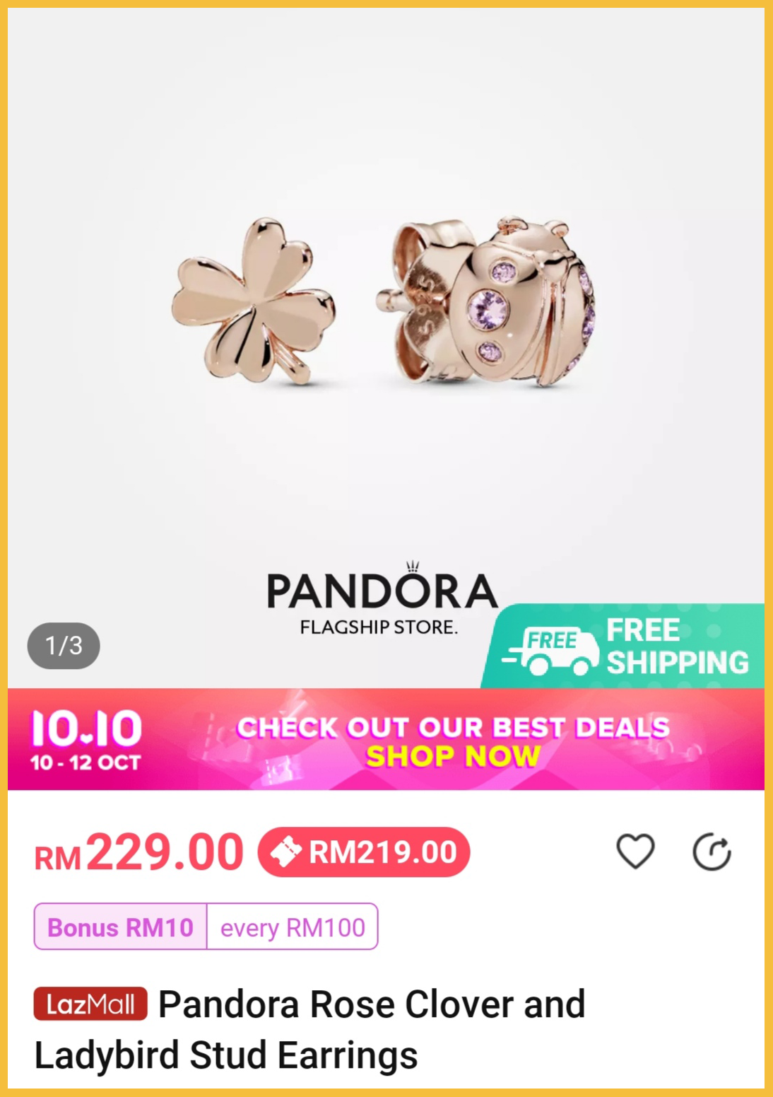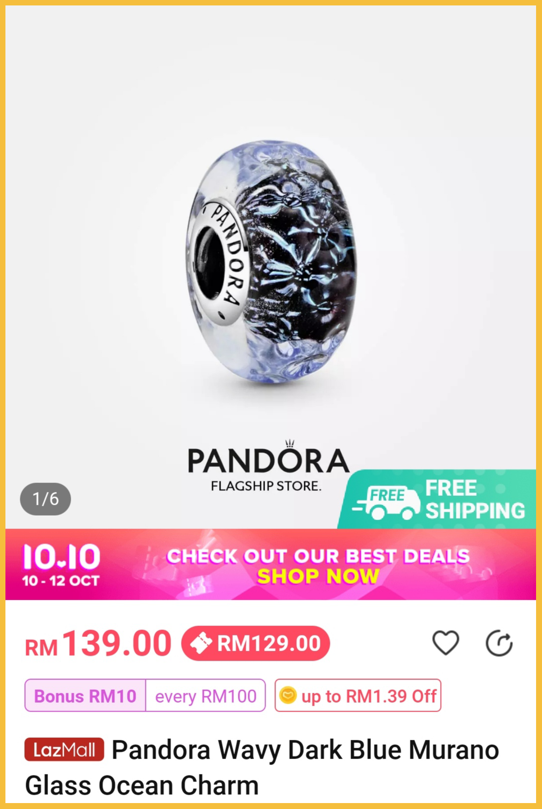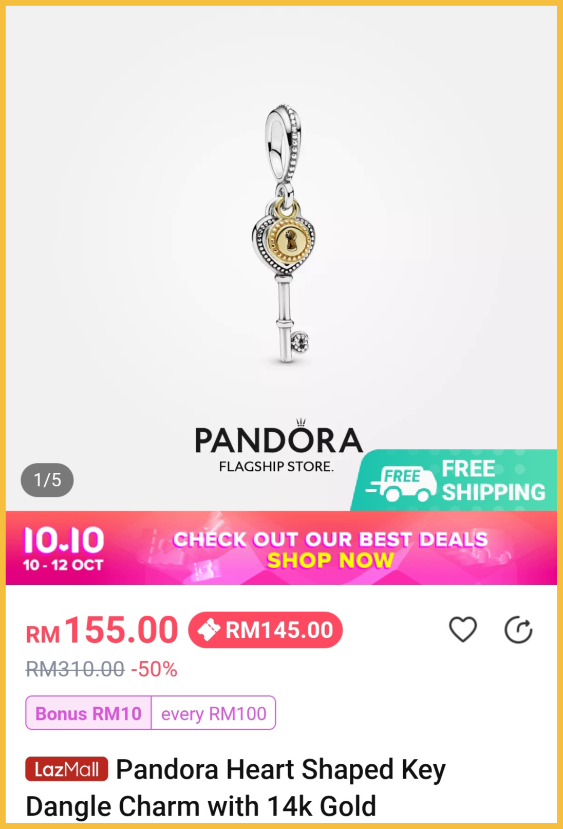 不过,这项优惠是在Lazada Pandora 官网推出的【10.10 Lunch Surprise】促销,促销时间将在12pm 至2pm!话不多说,我们来看看有哪些优惠款式的饰品吧!
