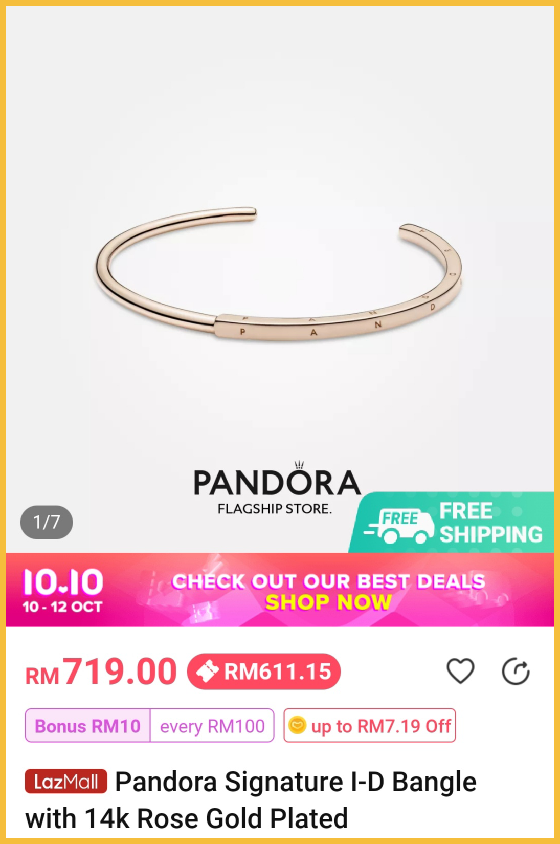 Pandora Signature I-D Bangle with 14k Rose Gold Plated – RM719 RM611.15(领取优惠券后折扣的价格)