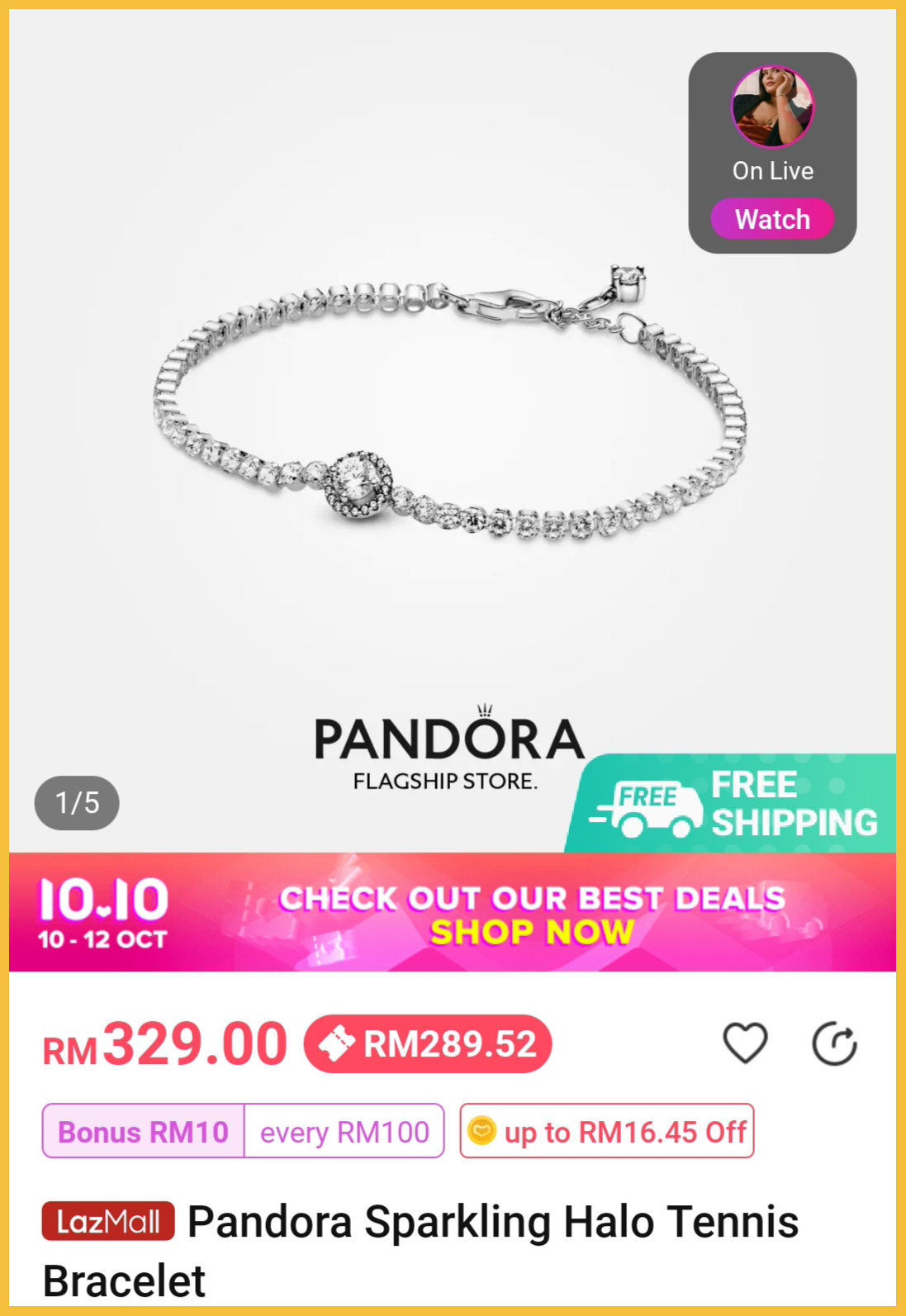 Pandora Sparkling Halo Tennis BraceletRM329 RM289.52(领取优惠券后折扣的价格)