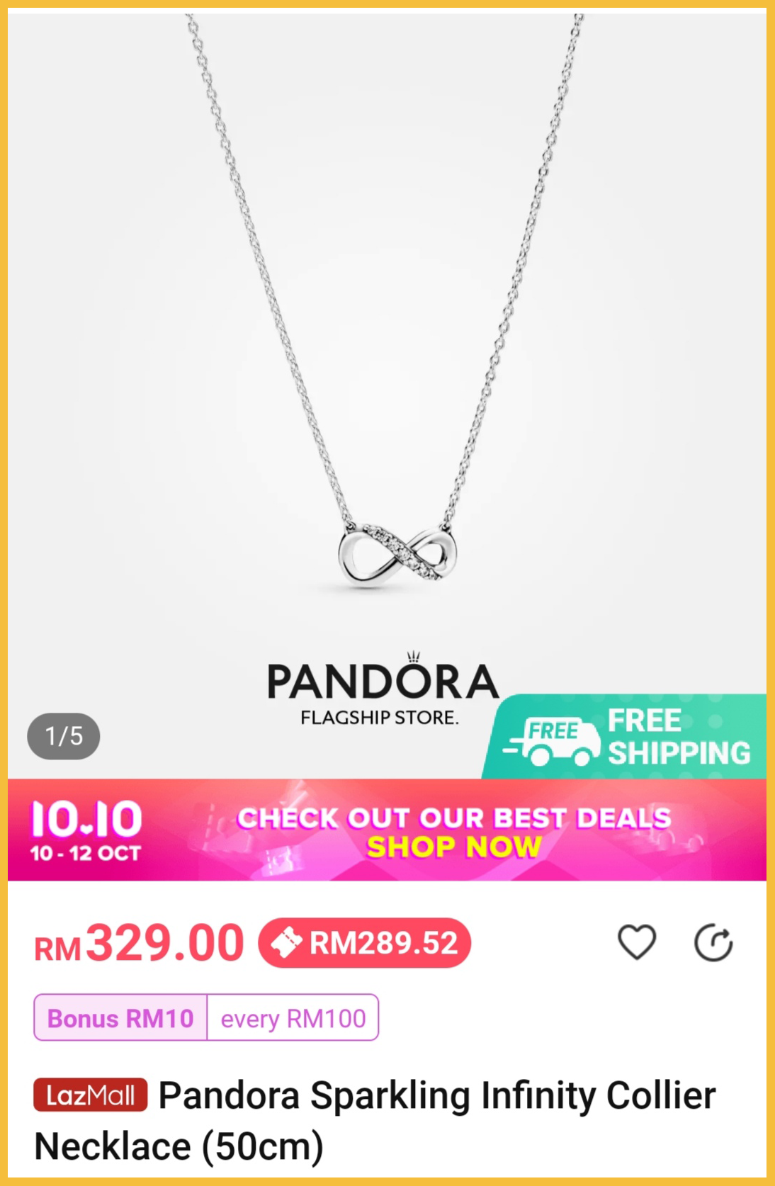 Pandora Sparkling Infinity Collier Necklace (50cm)RM329 RM289.52(领取优惠券后折扣的价格)