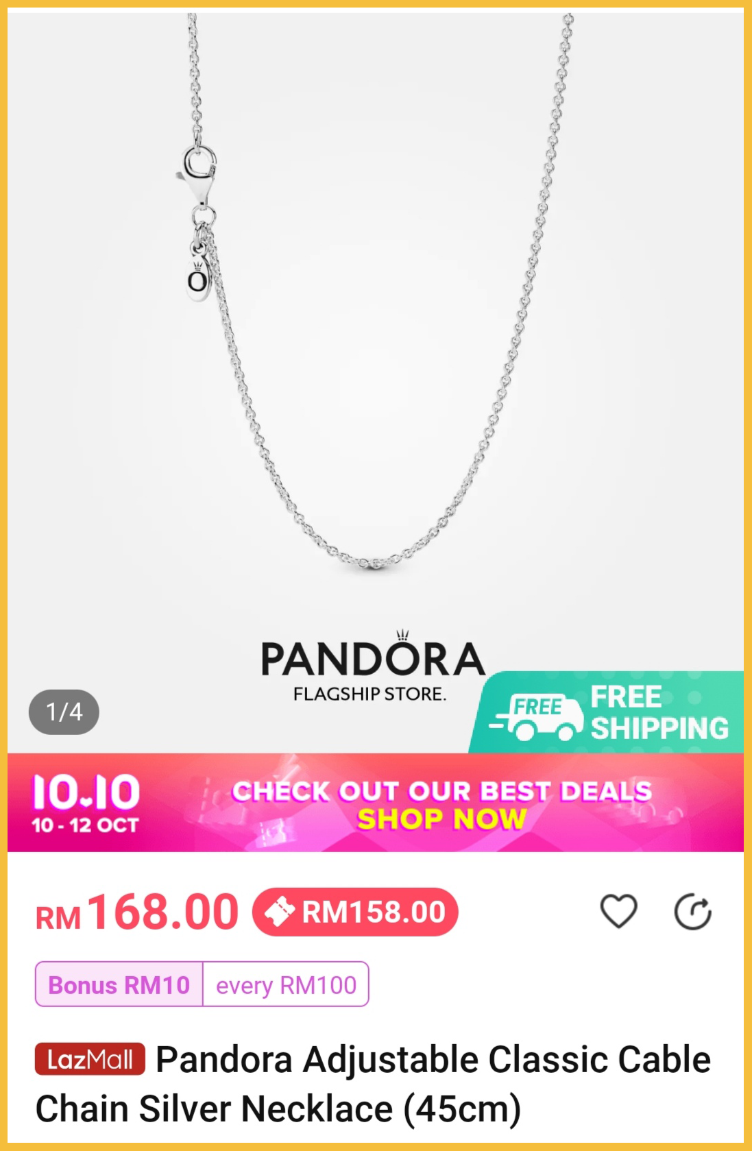 Pandora Adjustable Classic Cable Chain Silver Necklace (45cm)RM168 RM158(领取优惠券后折扣的价格)