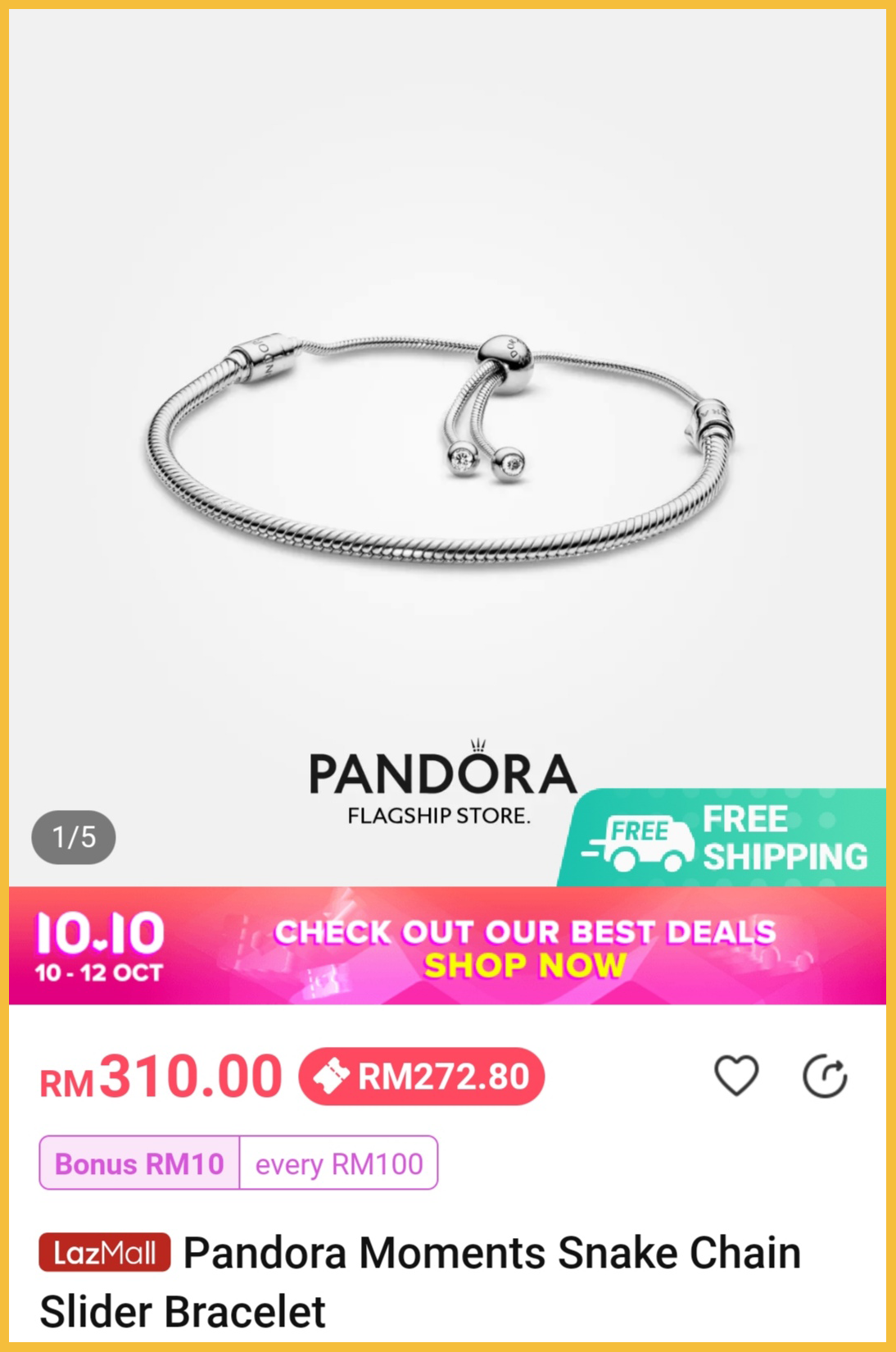 ▼Pandora Moments Snake Chain Slider Bracelet – RM310 RM272.80(领取优惠券后折扣的价格)