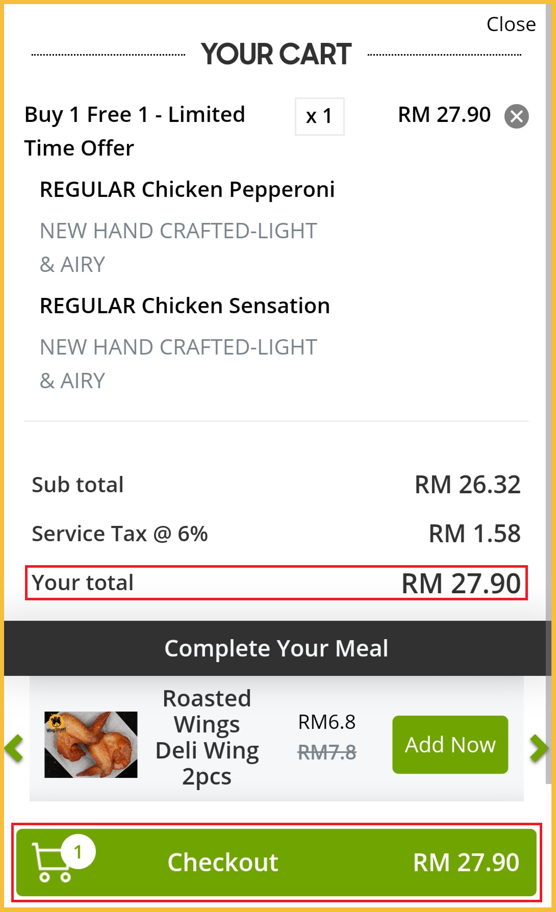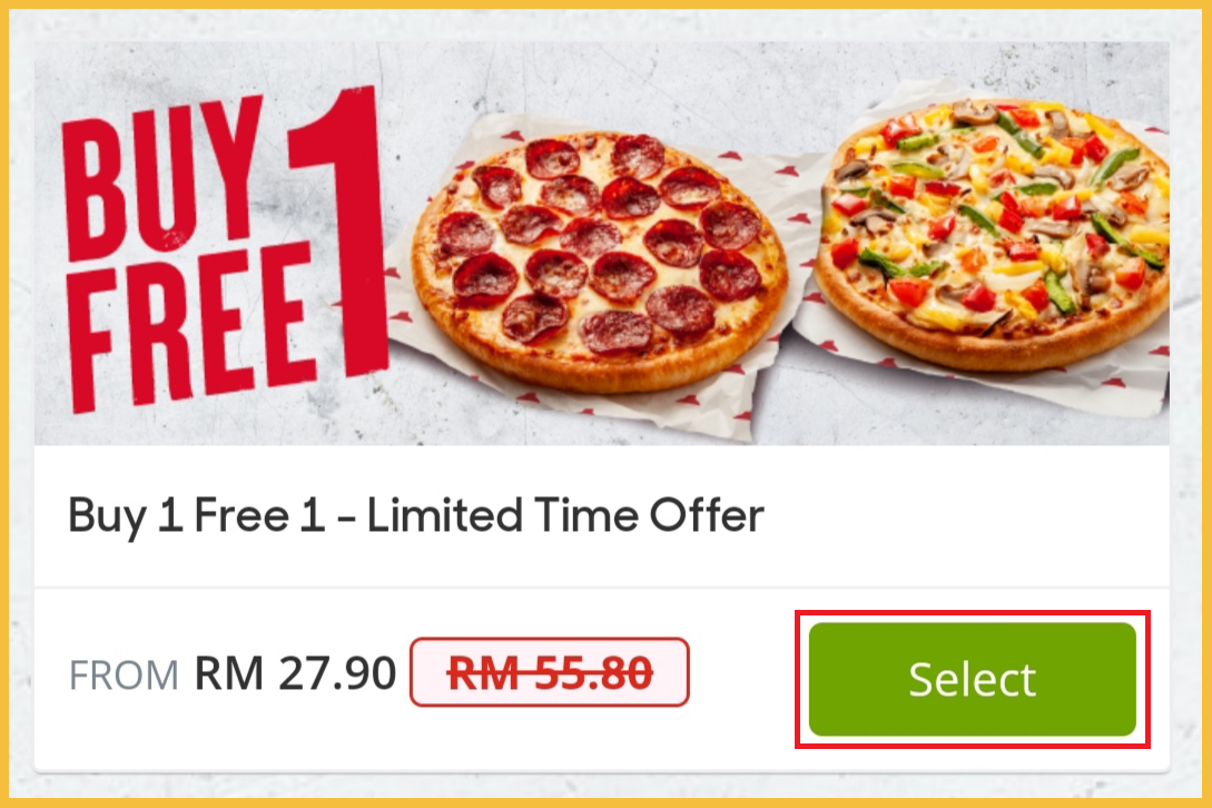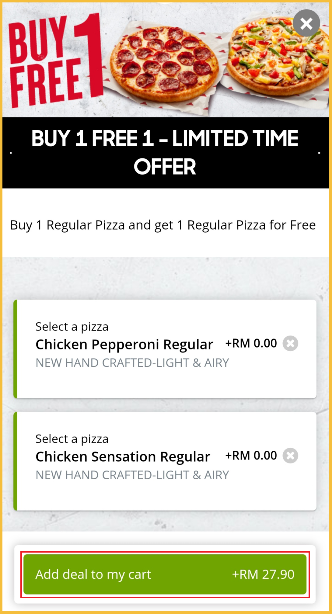 ※ 2份Regular Pizza 只需RM27.90!相等于一份 Pizza 只需RM13.95!