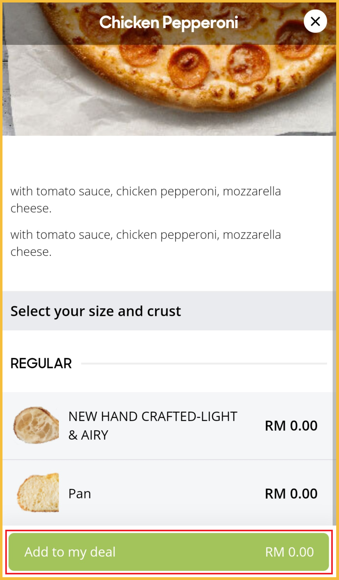 步骤 8:同样的选择你想要的饼皮或添加任何配料后,点击「Add To My Deal」。