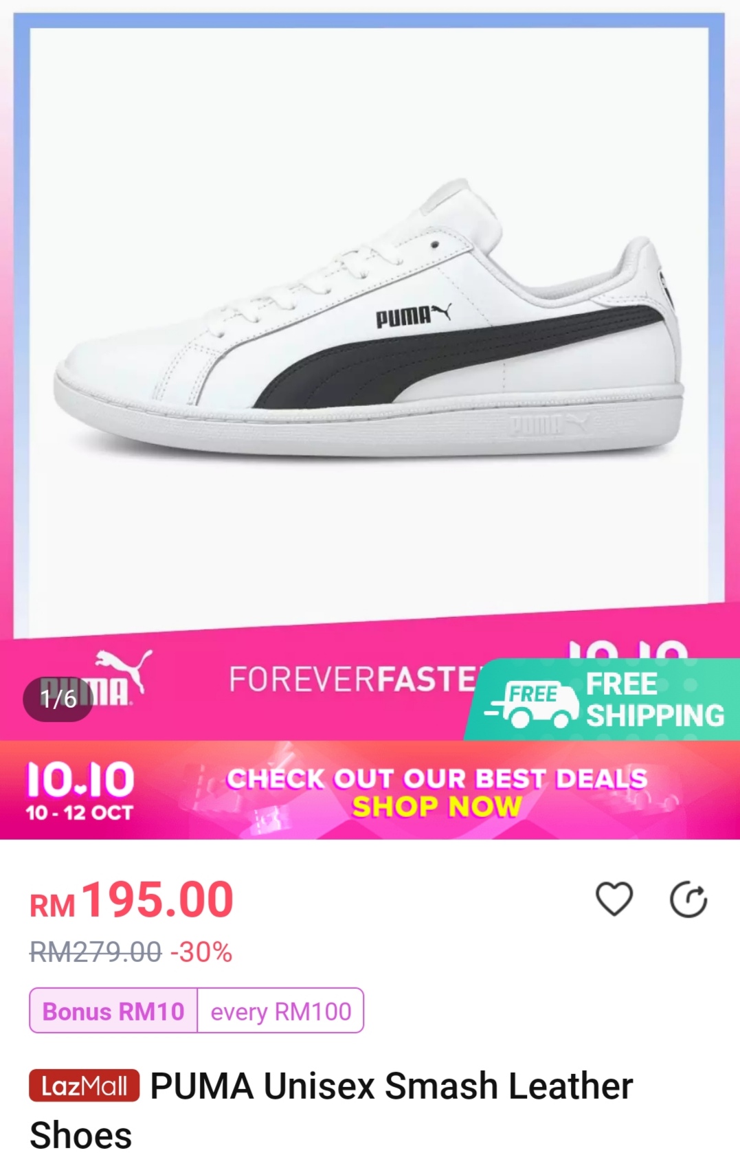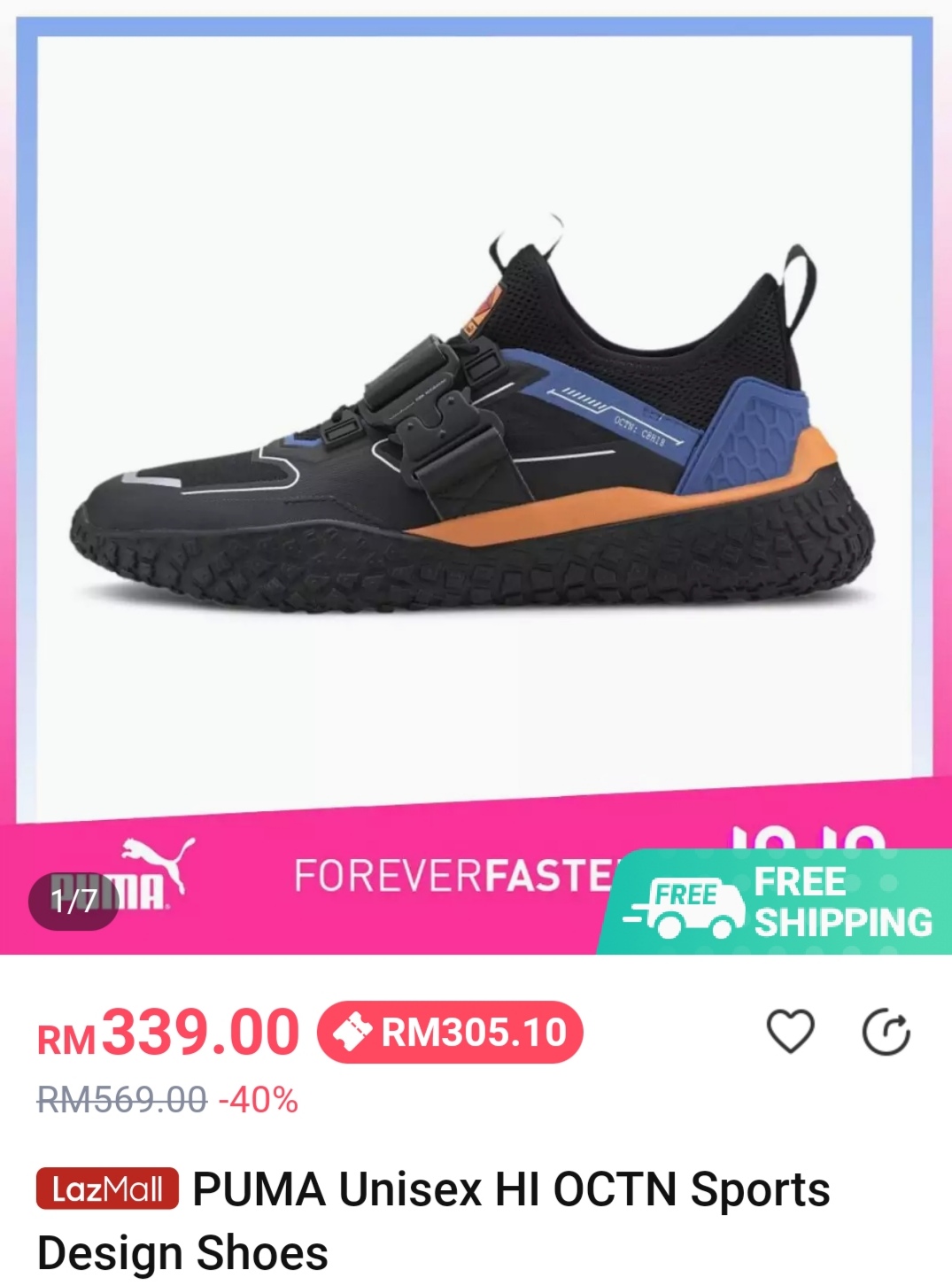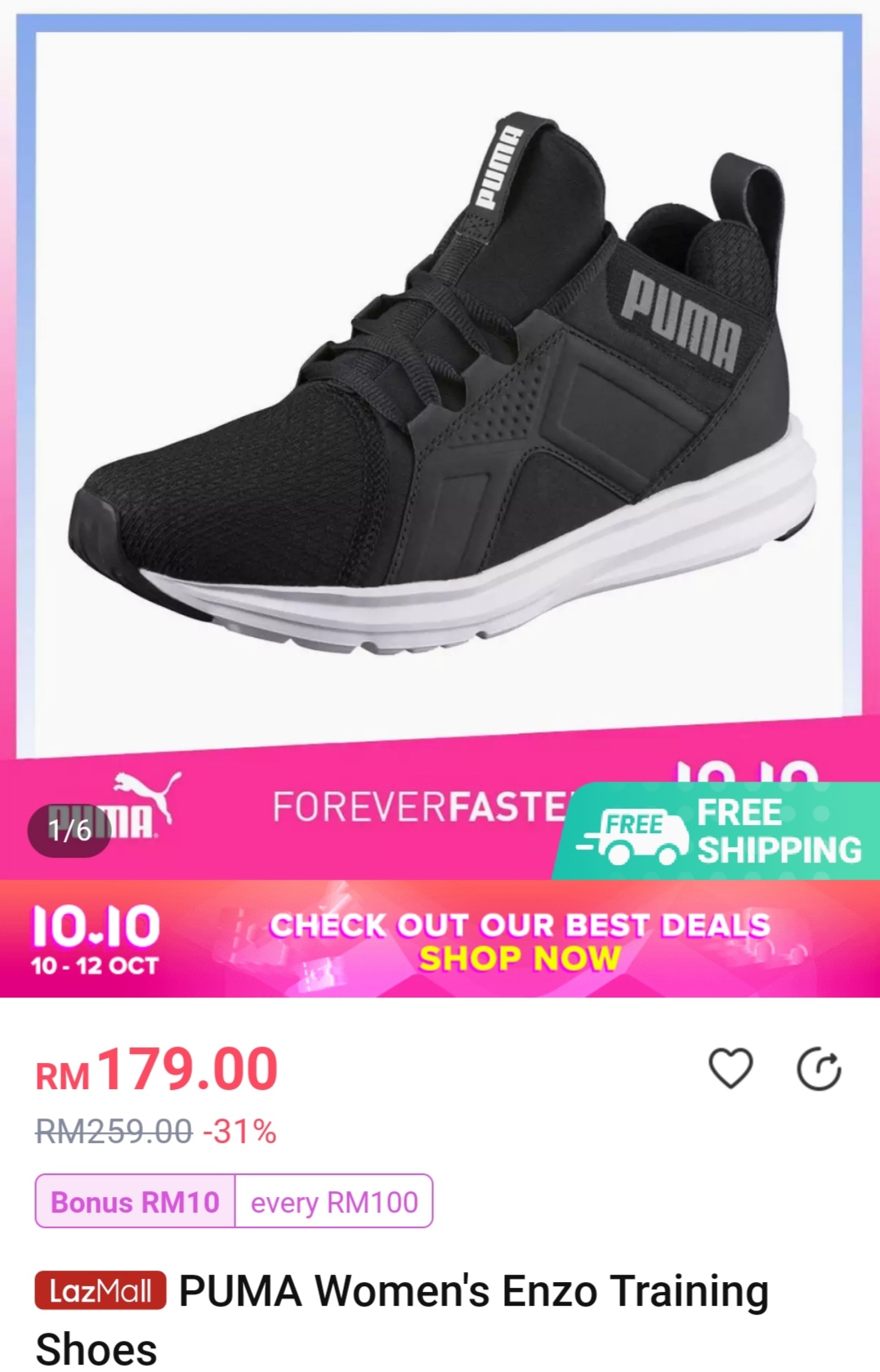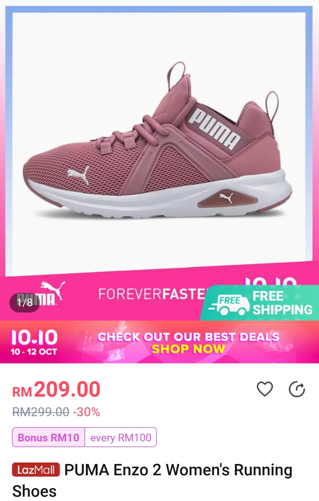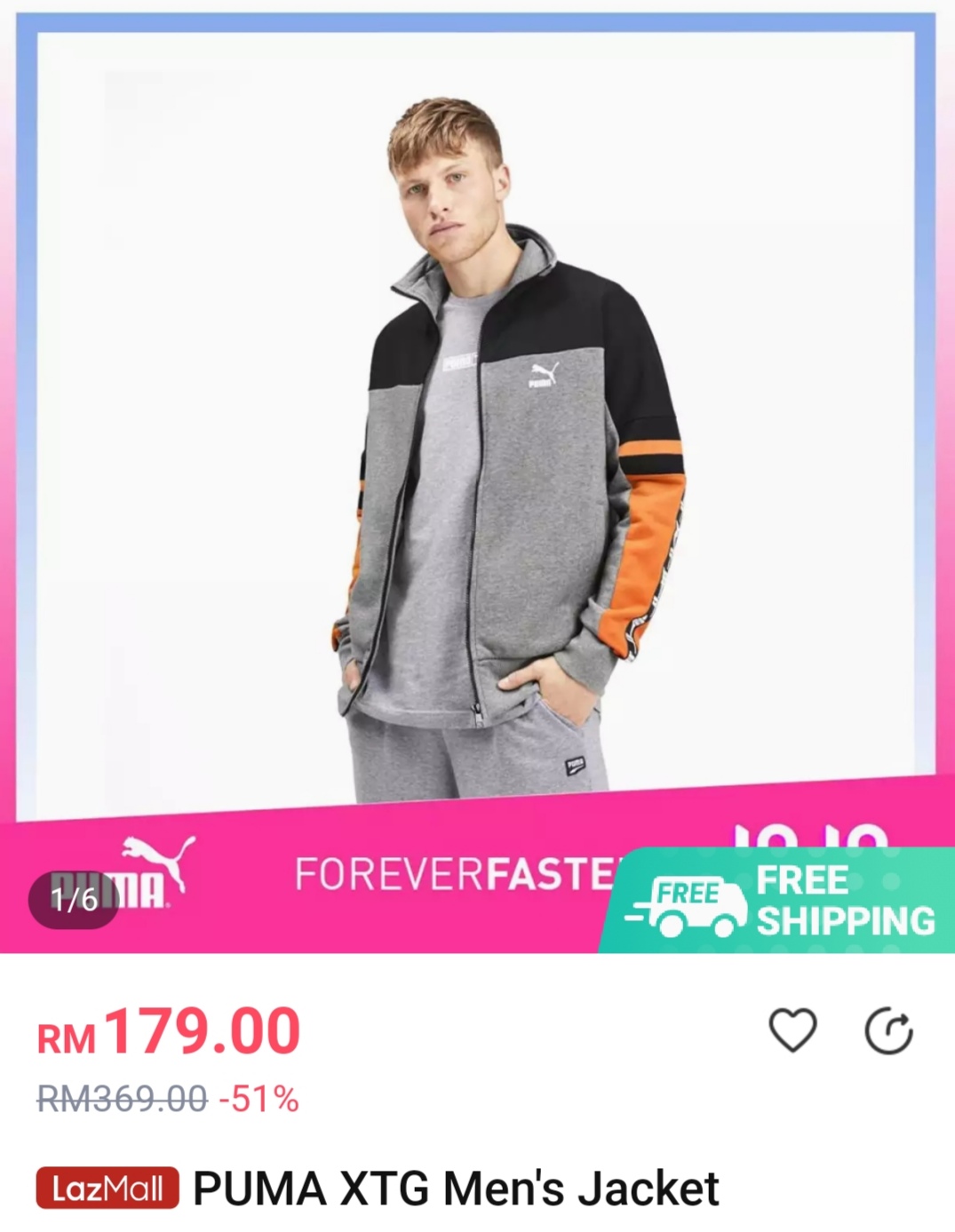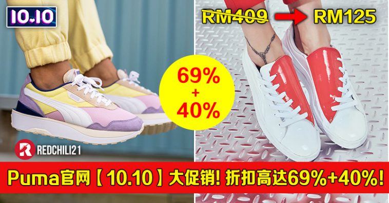 这项优惠是由大马网购平台Lazada 与Puma 联合推出【10.10】大优惠,折扣高达69%,另外,购买2样商品再折扣40%!