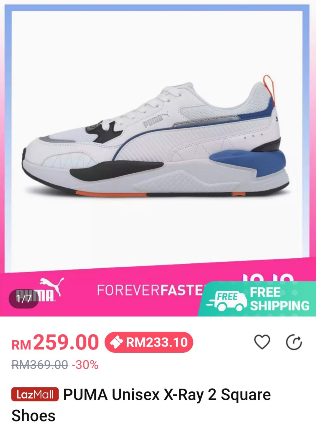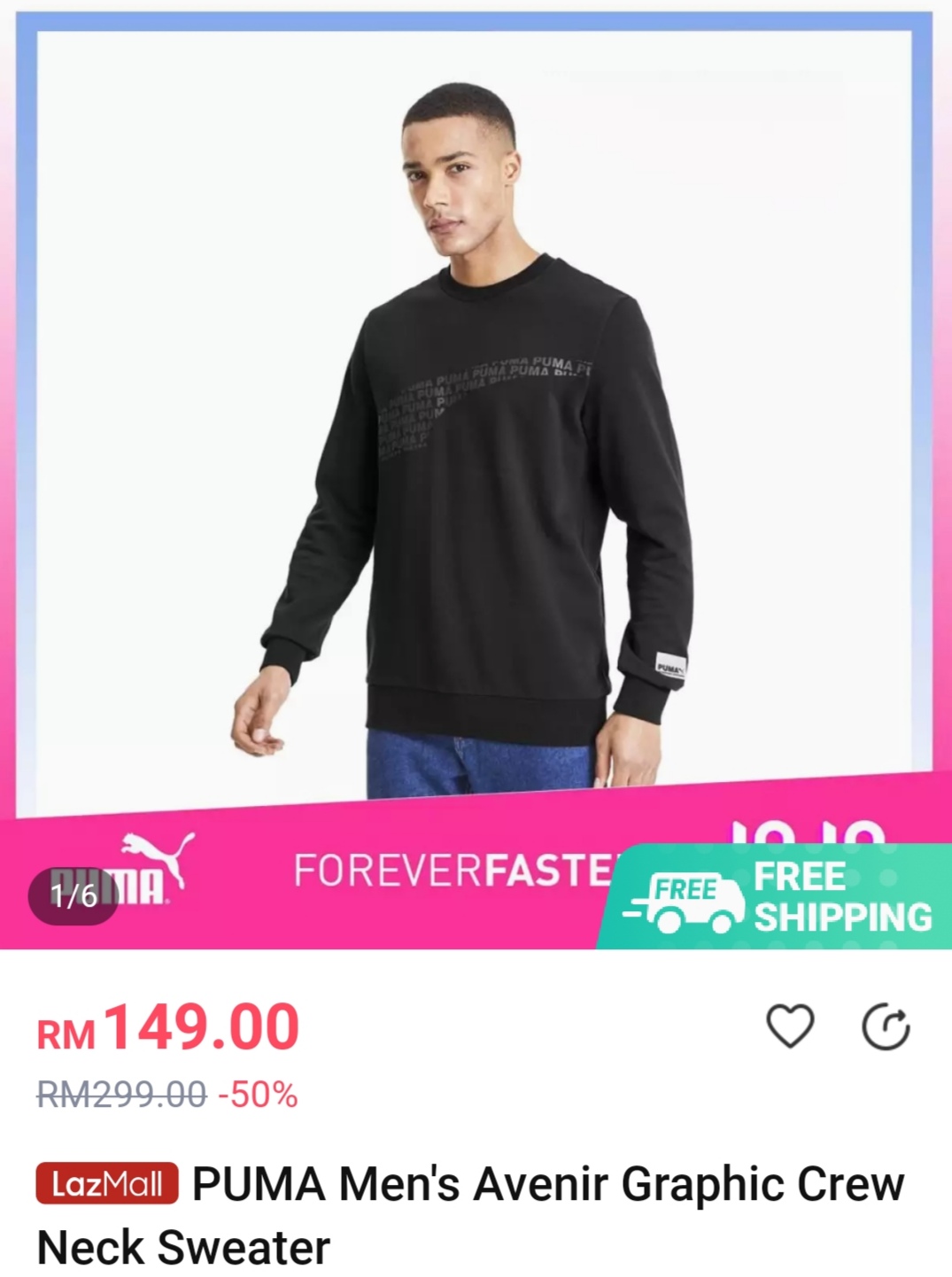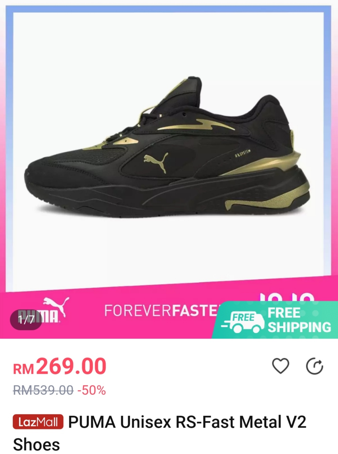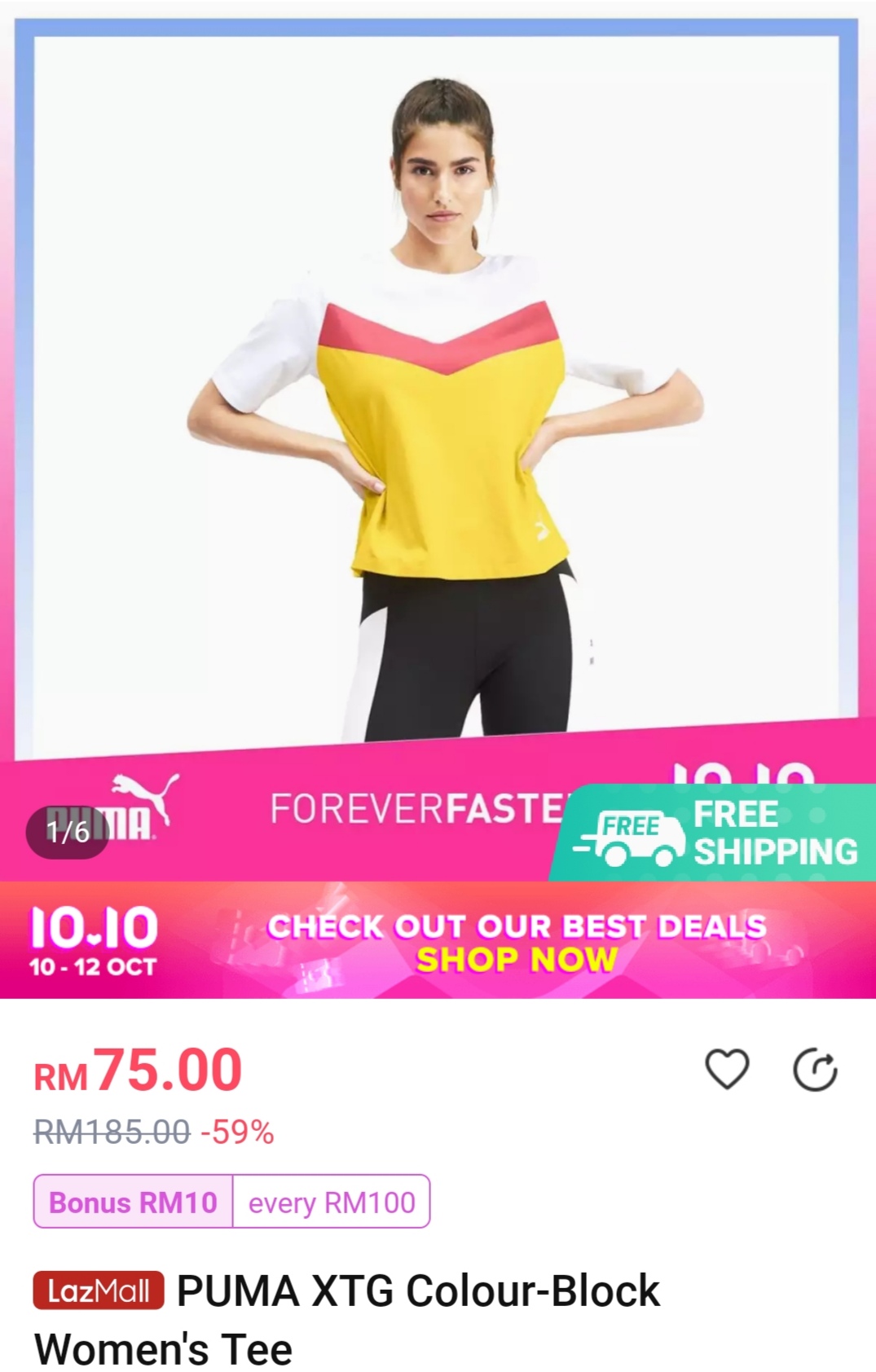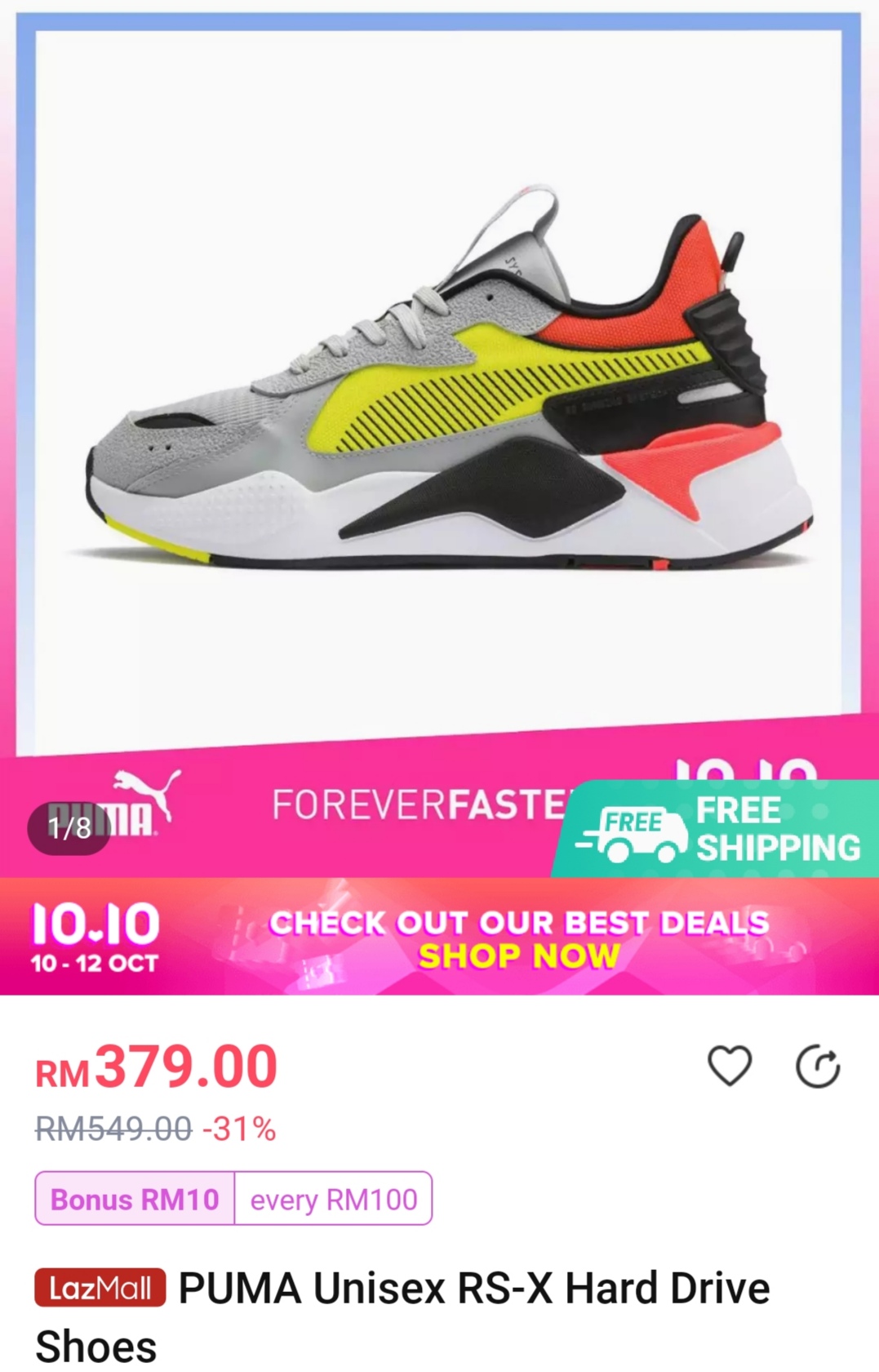 这项优惠是由大马网购平台Lazada 与Puma 联合推出【10.10】大优惠,折扣高达69%,另外,购买2样商品再折扣40%!