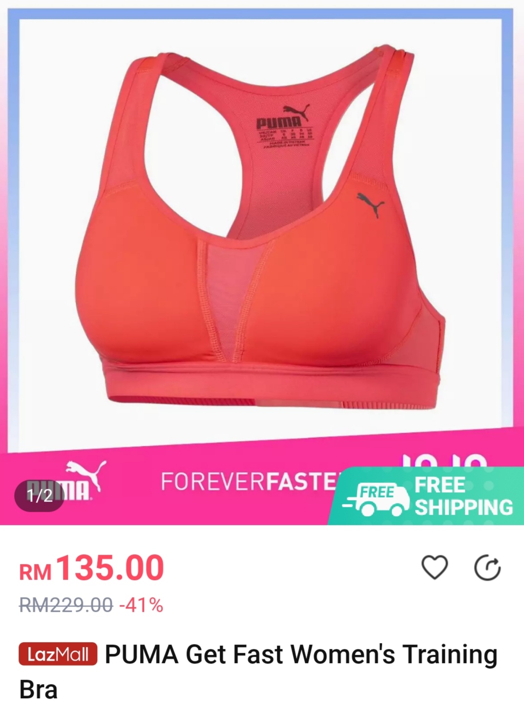 ▼ PUMA Get Fast Women’s Training Bra【折扣41%】- 只需RM135(原价RM229)