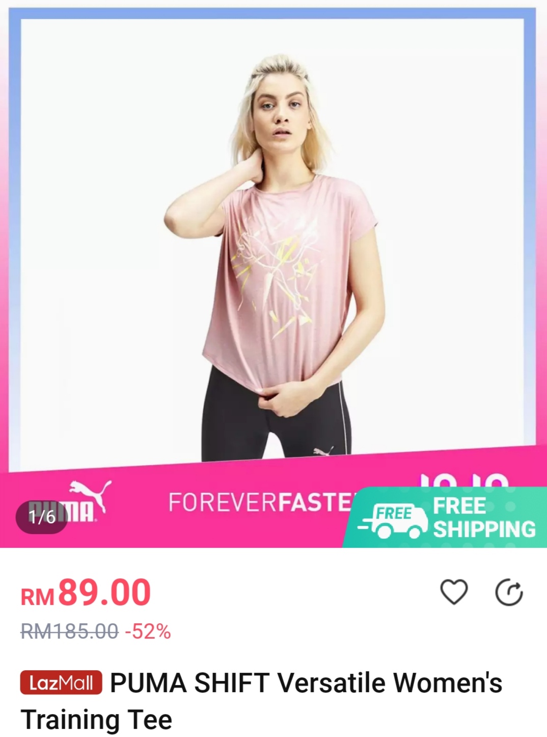▼ PUMA SHIFT Versatile Women’s Training Tee【折扣52%】- 只需RM89(原价RM185)