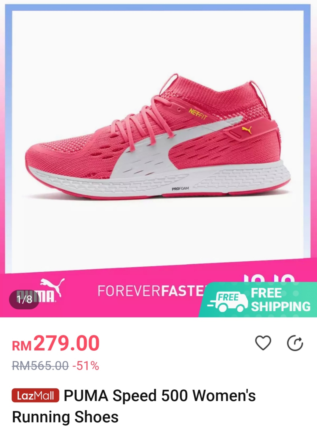 ▼ PUMA Speed 500 Women’s Running Shoes【折扣51%】- 只需RM565(原价RM279)