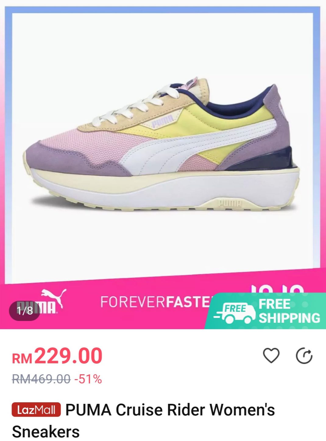 ▼ PUMA Cruise Rider Women’s Sneakers【折扣51%】- 只需RM229(原价RM469)