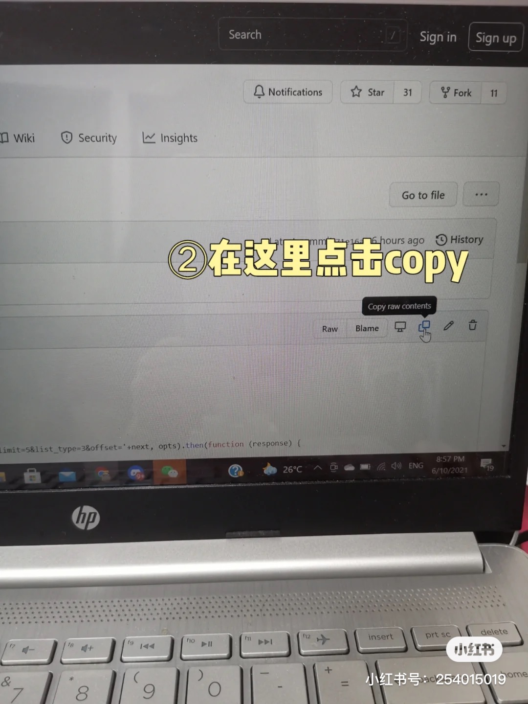 Step 3:进去 “file” 之后,点击 “copy raw contents”。