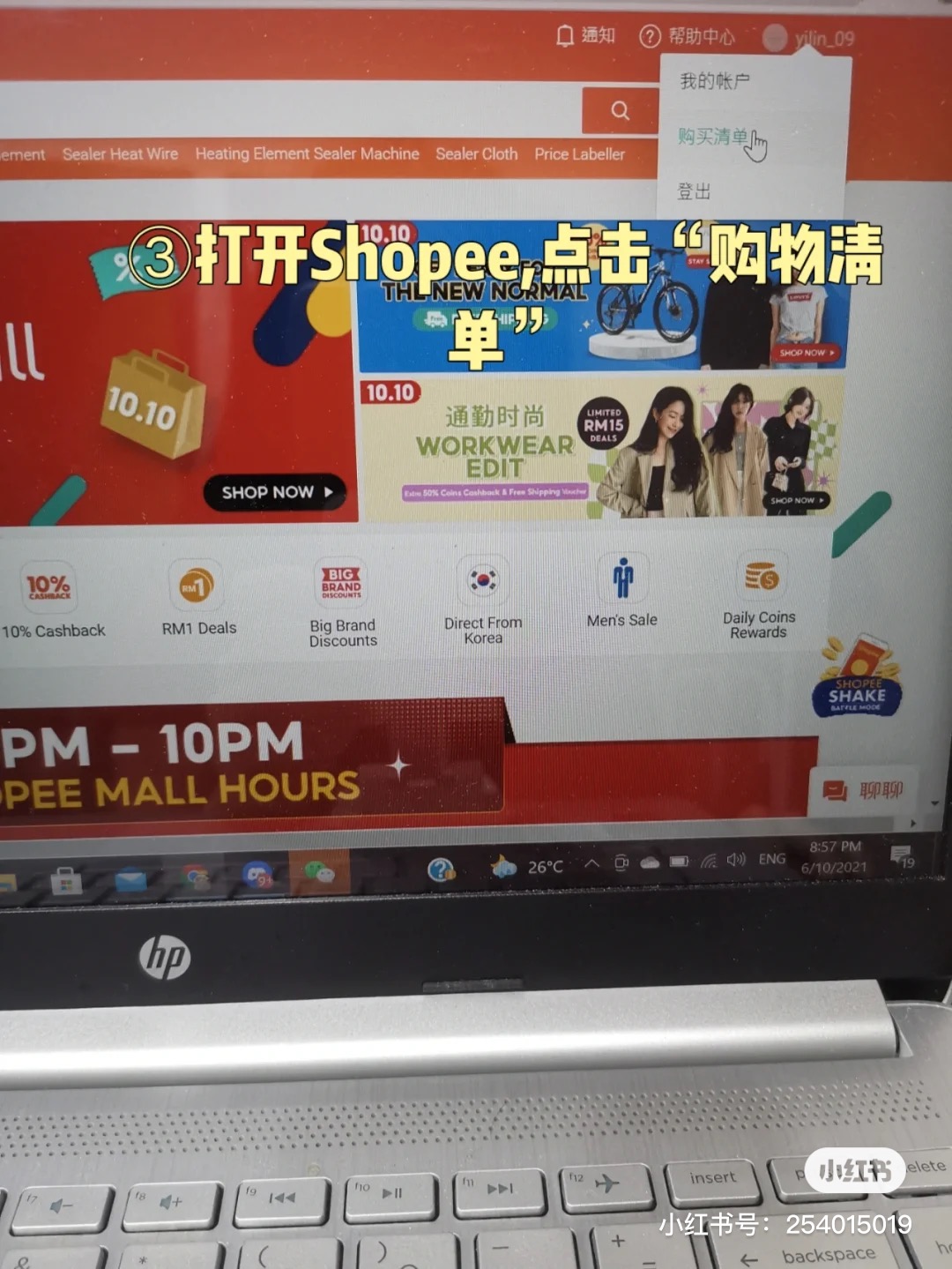 Step 4:打开 Shopee (记得登录账号哦),点击 “购物清单”。