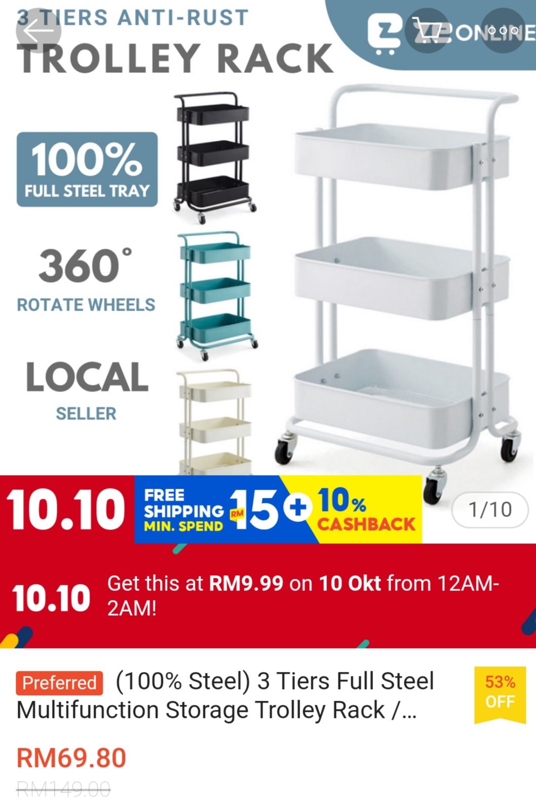 ▪ 3 Tiers Full Steel Multifunction Storage Trolley Rack – RM149 RM9.99
