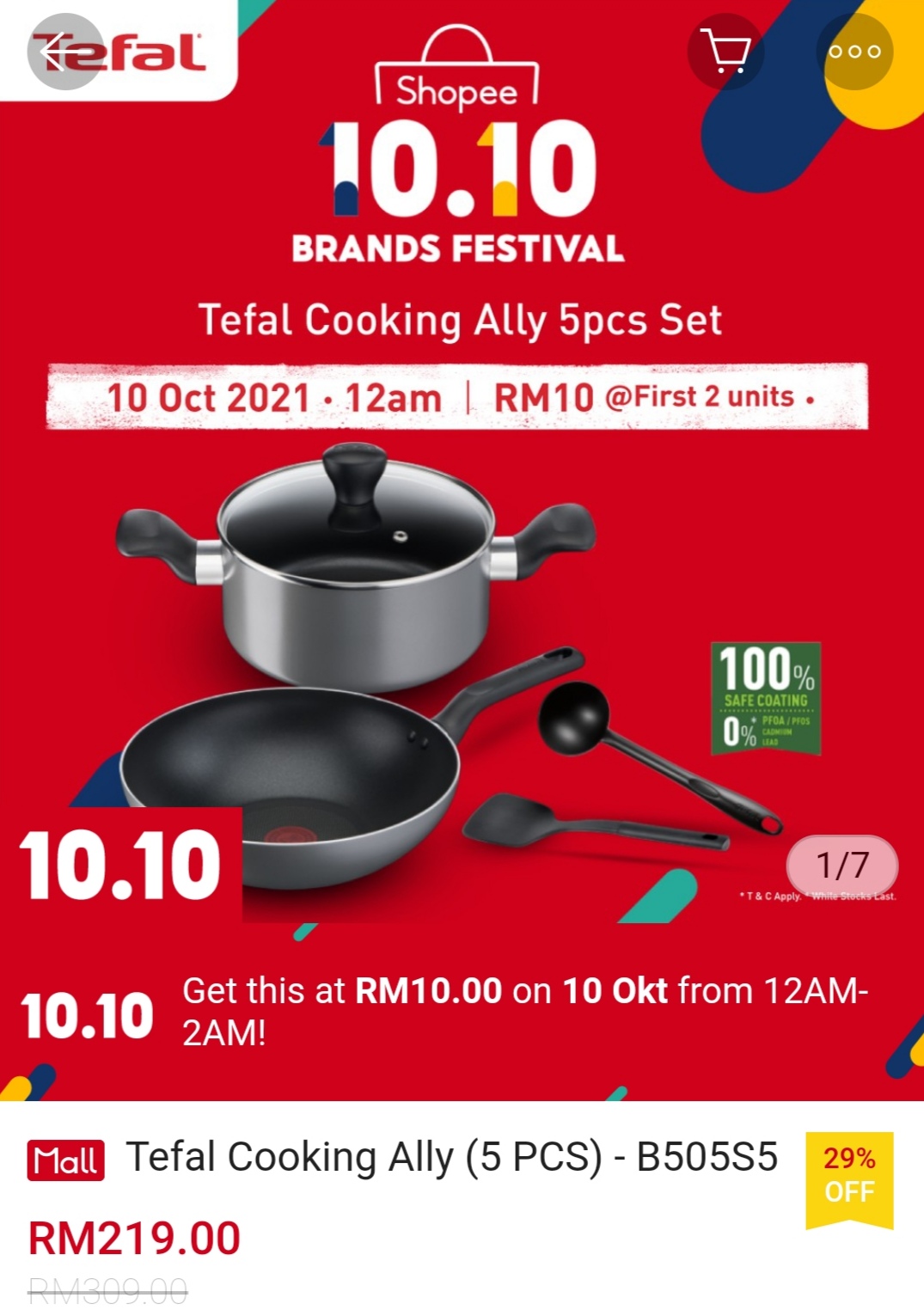 ▪ Tefal Cooking Ally (5 PCS) – B505S5 – RM309 RM10