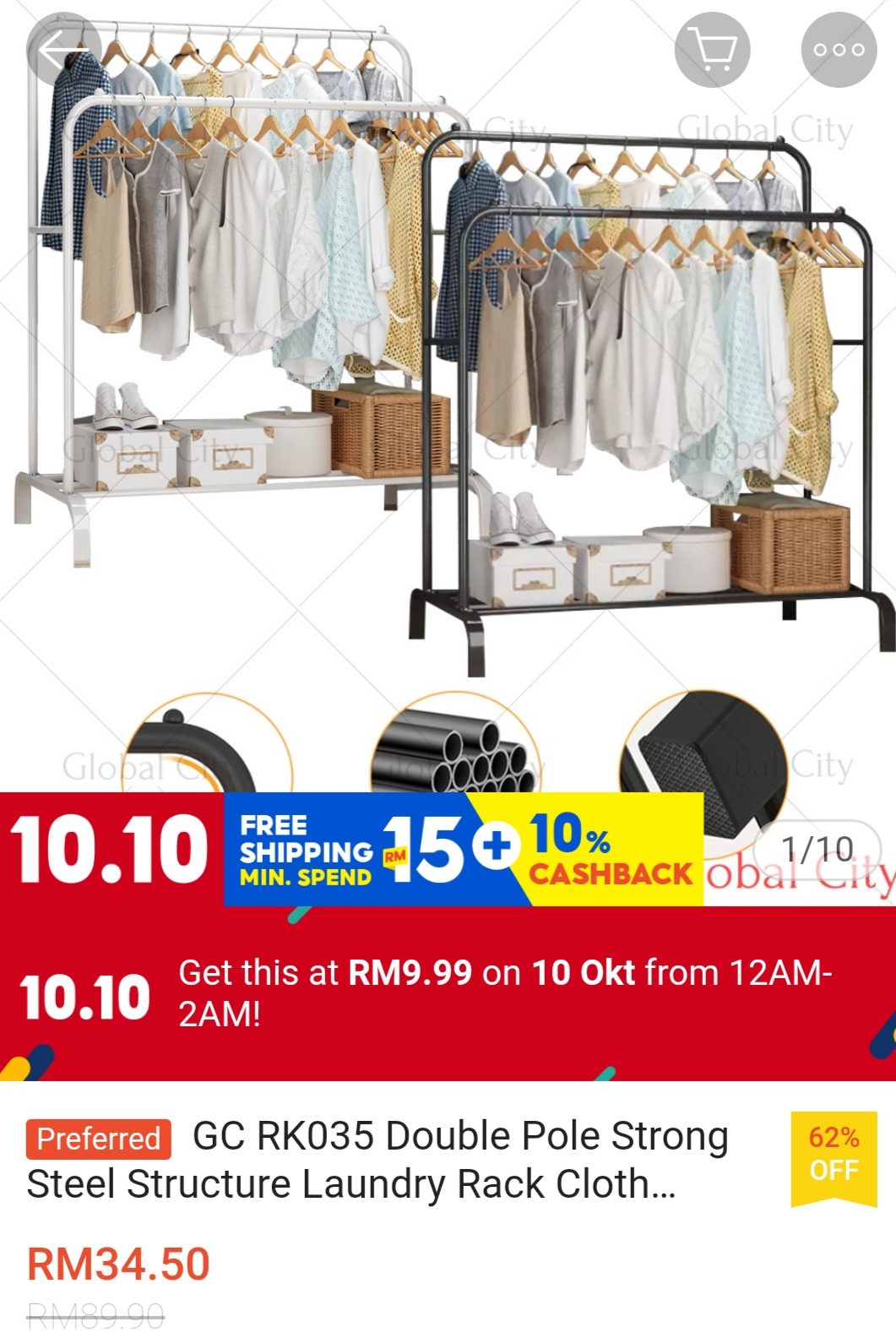 ▪ Double Pole Strong Steel Structure Laundry Rack Cloth Organizer Cloth Hanger – RM89.90 RM9.99