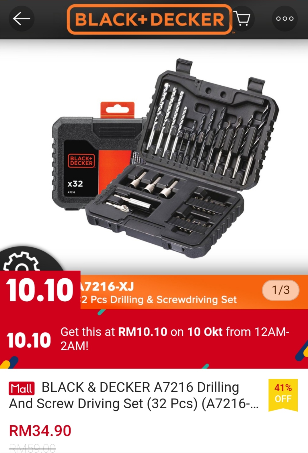 ▪ BLACK & DECKER A7216 Drilling And Screw Driving Set (32 Pcs) – RM59 RM10.10